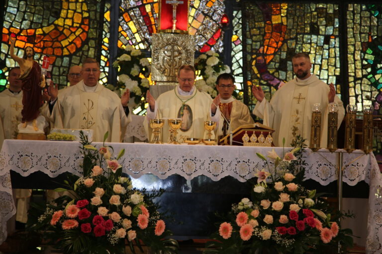 Na początku liturgii ks. Radosław Wileński SAC, proboszcz, podkreślił, że Święto Miłosierdzia Bożego jest czasem wspólnej modlitwy i dziękczynienia za Bożą miłość oraz okazją do modlitwy o pokój na świecie.
