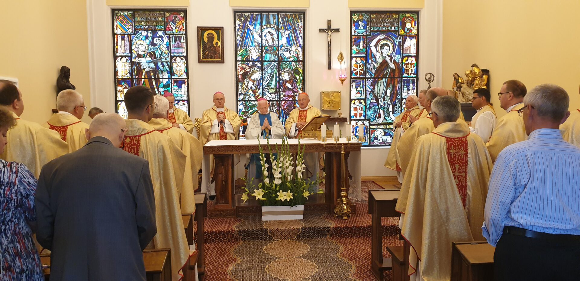 W homilii podczas Mszy św. bp Wojtkowski podkreślił, że w ostatnich dniach odprawił kolejno Mszę św. uwielbienia Chrystusa Najwyższego Kapłana, Mszę św. dziękczynną za życie i wszystkie łaski, przebłagalną – za grzechy całego życia a wreszcie wczoraj – Mszę św. błagalną o dar wytrwania w dobrym aż do końca. Tę, której dziś przewodniczy, ofiarowuje z prośbą o beatyfikację i kanonizację kard. Wyszyńskiego, ks. Romana Kotlarza oraz Marii Okońskiej, która – jak podkreślił – jest „siłą napędową dziejów maryjnych Kościoła katolickiego w Polsce a nawet i na całym świecie”.