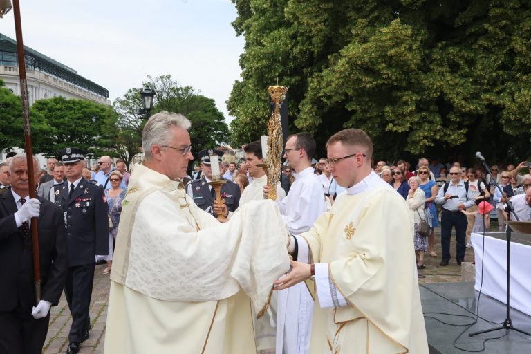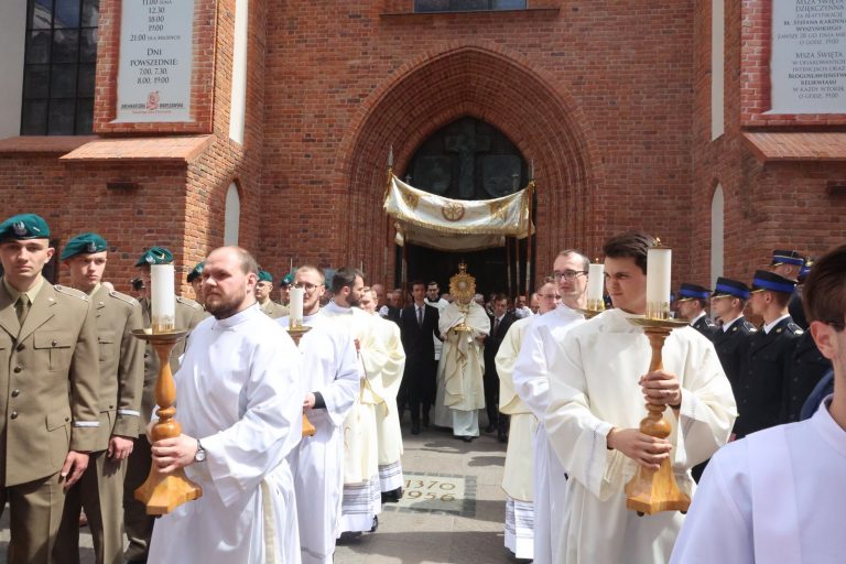 – Chrystus nie zostawia nas samymi, choć czasem tak się nam wydaje i wtedy chcielibyśmy wołać tak jak On na krzyżu: ‘Boże mój, czemuś mnie opuścił?”. Bóg nas nie tylko nie opuszcza, ale tak jak zapowiedział, rozmnażając chleb na pustyni, karmi nas w komunii świętej przemienionym chlebem i winem, ciałem i krwią swoją – tłumaczył kard. Nycz. Oby te podstawowe prawdy wiary nie zostały tylko zamknięte w ścianach kościołów, ale były obwieszczane na ulicach miast i wiejskich drogach wszędzie tam, gdzie żyje, pracuje i odpoczywa człowiek. Taki jest sens procesji Bożego Ciała – mówił dalej kardynał.