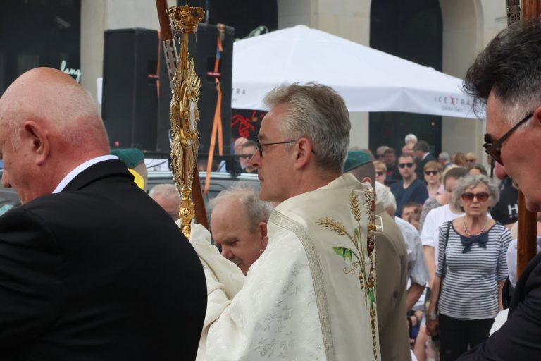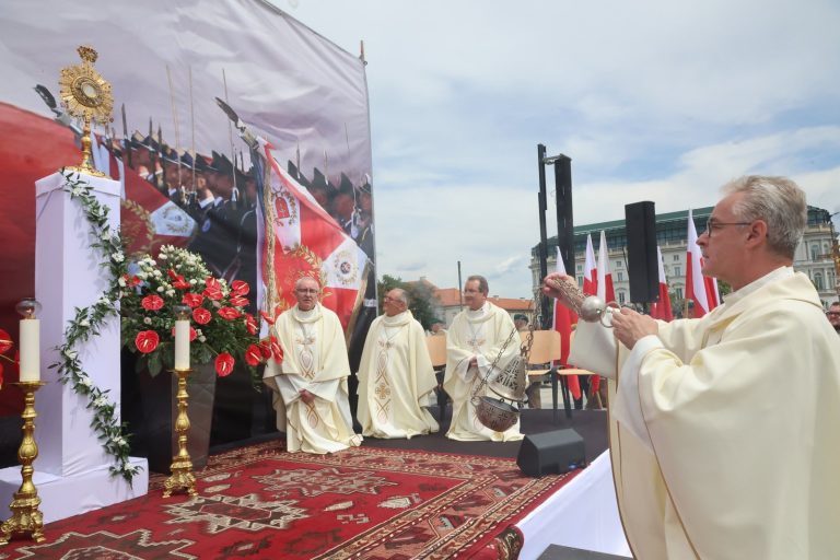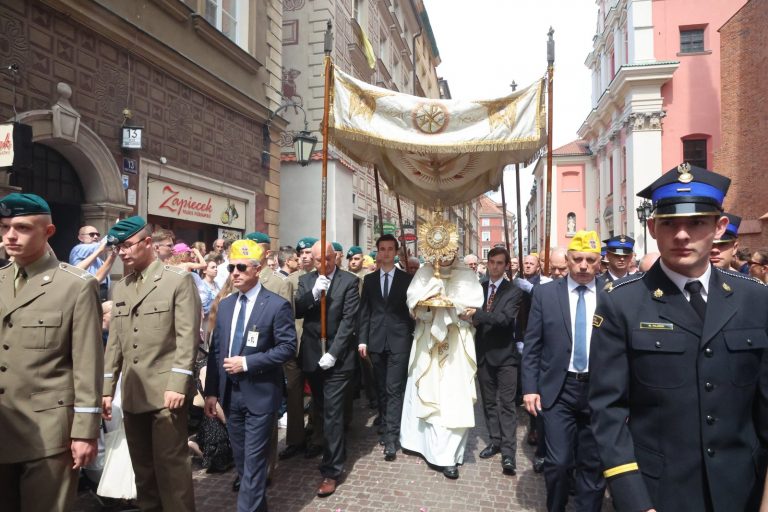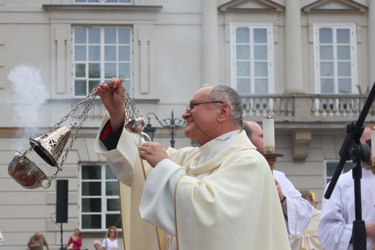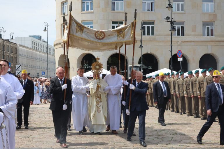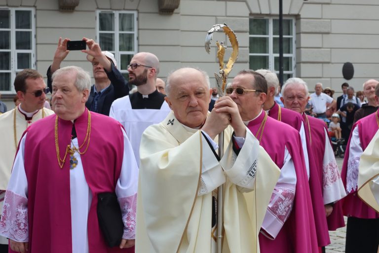 Przypomniał, że stołeczna procesja Bożego Ciała wróciła po dwóch latach spowodowanych pandemią koronawirusa do tradycyjnej trasy. Podziękował przy tym za udział i towarzyszenie duchowe tym, którzy podążali w ostatnich dwóch latach skromniejszą trasą od archikatedry do katedry polowej.