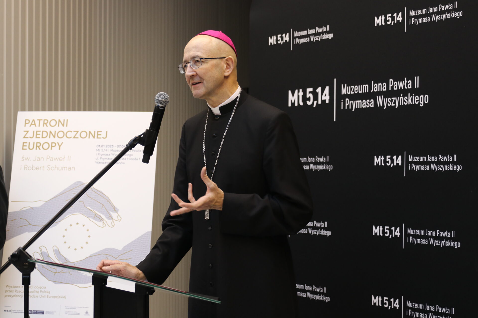 I podkreślił, że „takie same pragnienia i takie same cele miał Robert Schuman, jeden z założycieli Unii Europejskiej, jeden z jej ojców”, któremu również jest poświęcona nowa wystawa w Muzeum Jana Pawła II i Prymasa Wyszyńskiego.