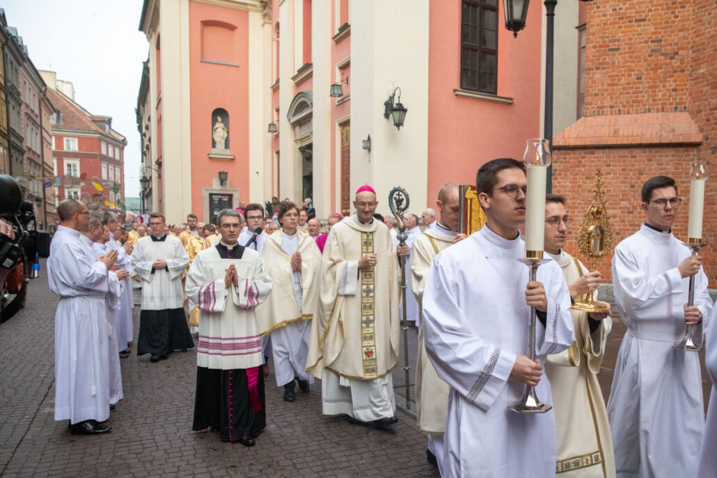 W procesji do archikatedry warszawskiej zostały przeniesione relikwie Krzyża Świętego, które metropolita warszawski ucałował w progach świątyni.