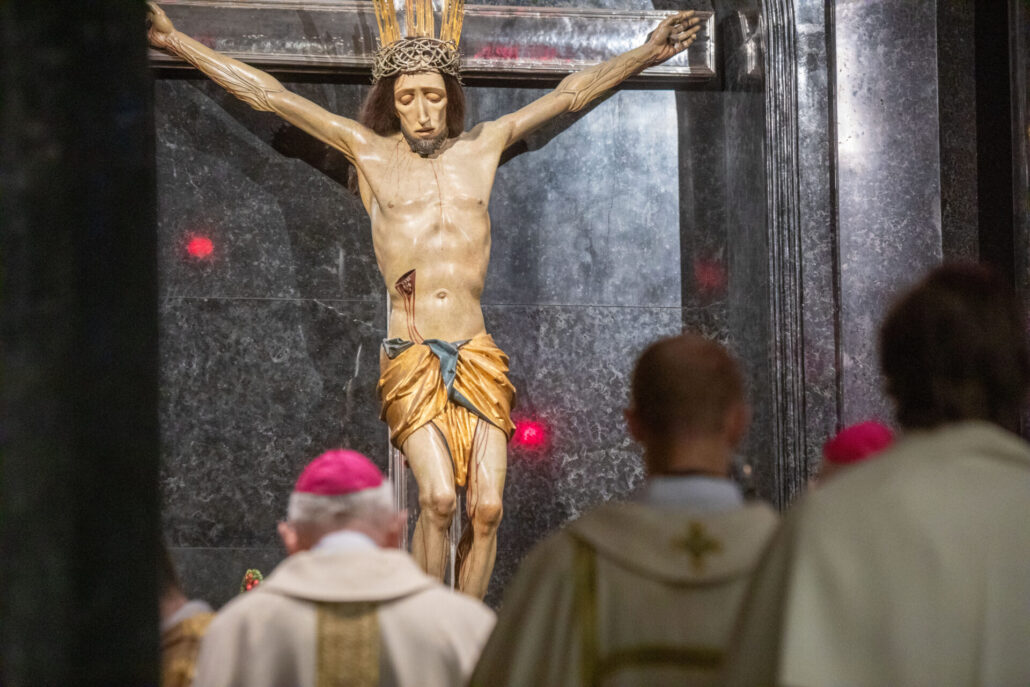 Na koniec Mszy św. abp Adrian Galbas wręczył dekrety kustoszom i proboszczom kościołów jubileuszowych, a wierni otrzymali pamiątkę otwarcia Roku Świętego z wizerunkiem cudownego krucyfiksu z kaplicy Baryczków.
