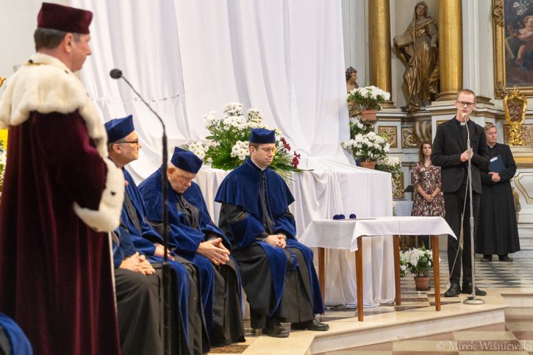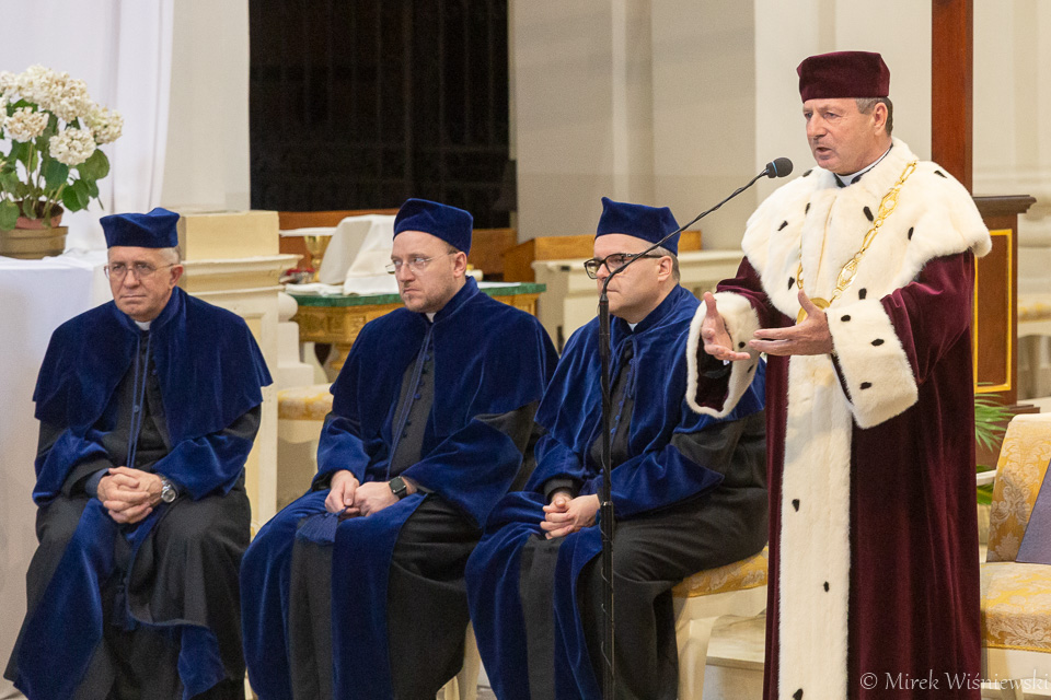 Rektor Papieskiego Wydziału Teologicznego Collegium Joanneum ks. prof. Krzysztof Pawlina zwracając się do promowanych powiedział, że „trzeba dziś stanąć na drogach, na których ludzie odchodzą od Kościoła”. Co więcej – trzeba być drogowskazem, mocnym świadkiem, aby ludzie wiedzieli gdzie jest Chrystus, gdzie jest Bóg – podkreślił. Przekonywał, że chodzi nie tylko o mówienie o Bogu, ale takie postępowanie, aby ludzie spotkali Chrystusa widząc jak On żyje w nas.