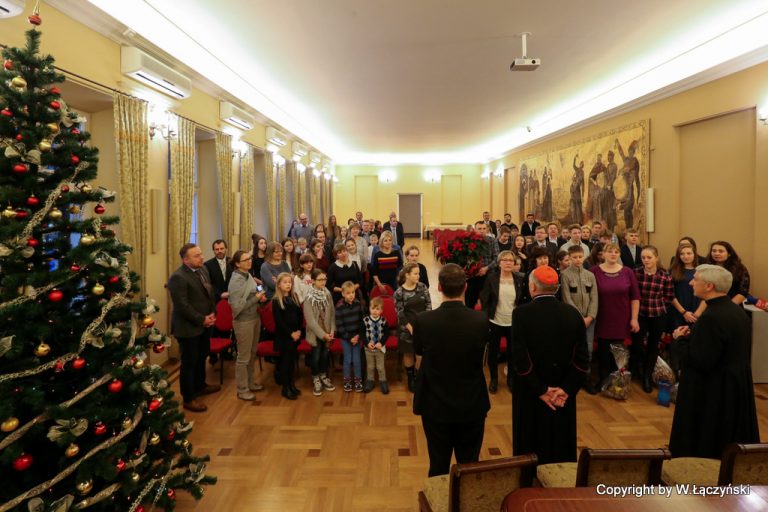 W ramach pobytu w Polsce 20-osobowa grupa dzieci i młodzieży z Wierszyny 23 grudnia gościła w Domu Arcybiskupów Warszawskich ♦ Przedświąteczne spotkanie było okazją do złożenia sobie życzeń i przełamania opłatkiem