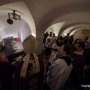 Po Mszy koncelebransi zeszli do krypt Archikatedry Warszawskiej na krótką modlitwę przy grobie kard. Józefa Glempa.