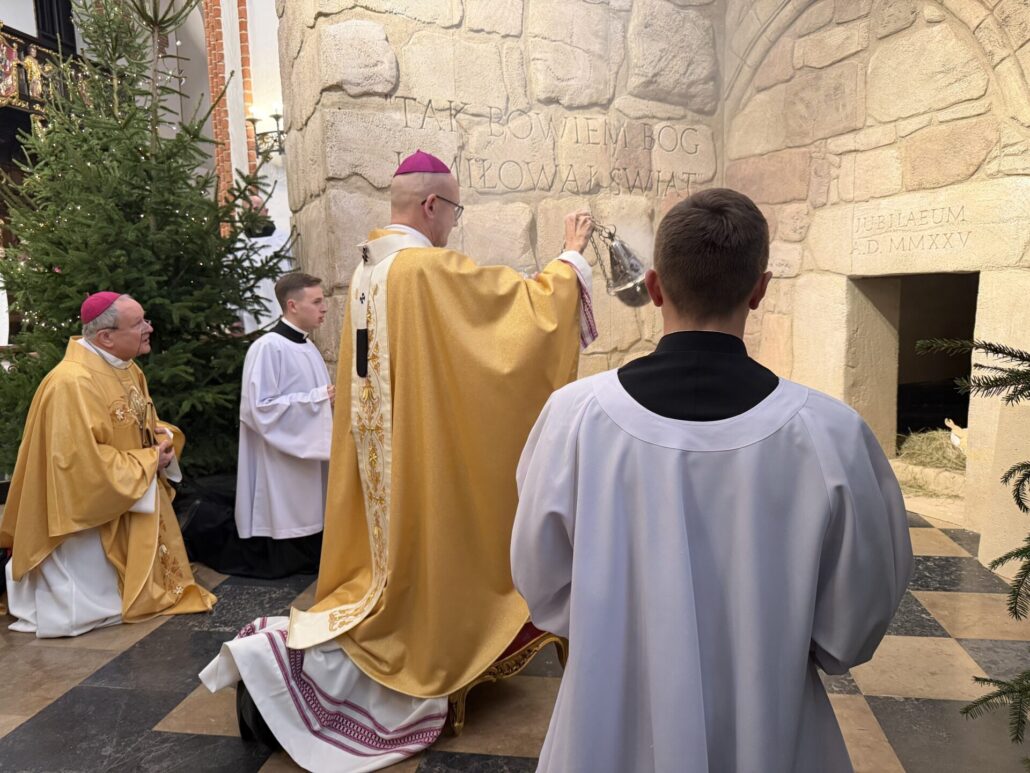 Abp Galbas w homilii nawiązał do czytanego dziś Prologu Ewangelii św. Jana. Podkreślił, że wszechmocny i przedwieczny Bóg mógł przyjść na świat w dowolny sposób. Wybrał ubogie narodziny jako małe bezbronne Dziecko. – Nie chciał, by się go bano, lecz by Go kochano. Dziecka się nie boimy – podkreślił.