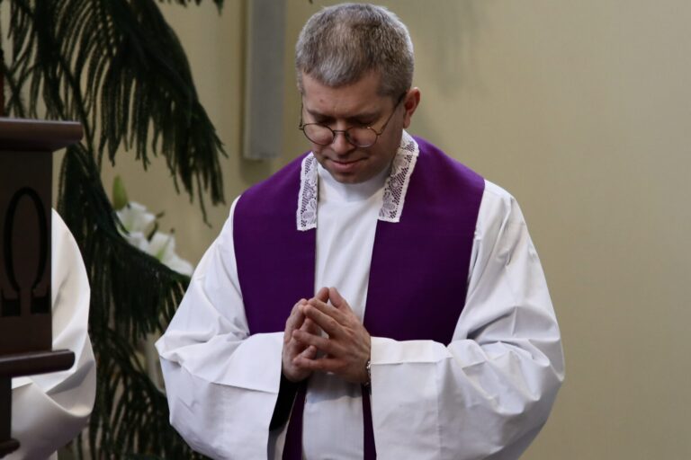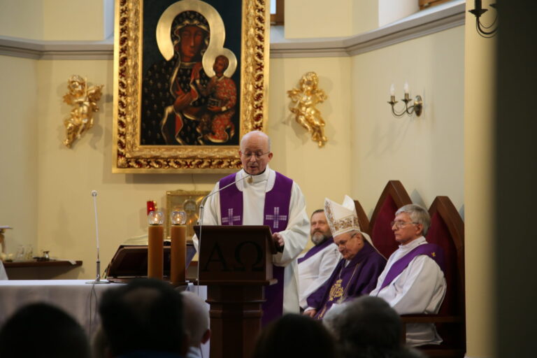 Podczas Mszy Świętej homilię wygłosił ks. Mirosław Cholewa, który, nawiązując do przeżywanego Wielkiego Postu, mówił o potrzebie modlitwy, postu i pojednania z Bogiem.