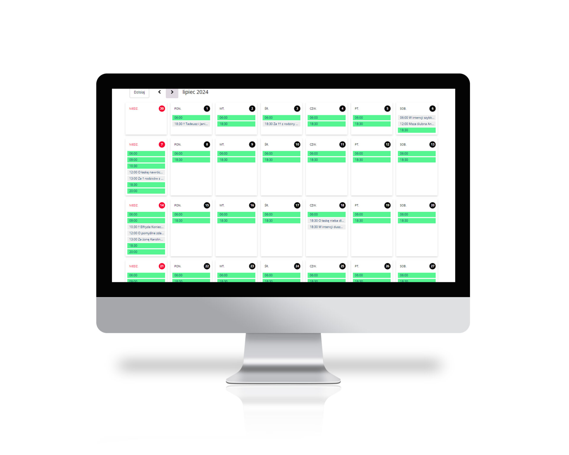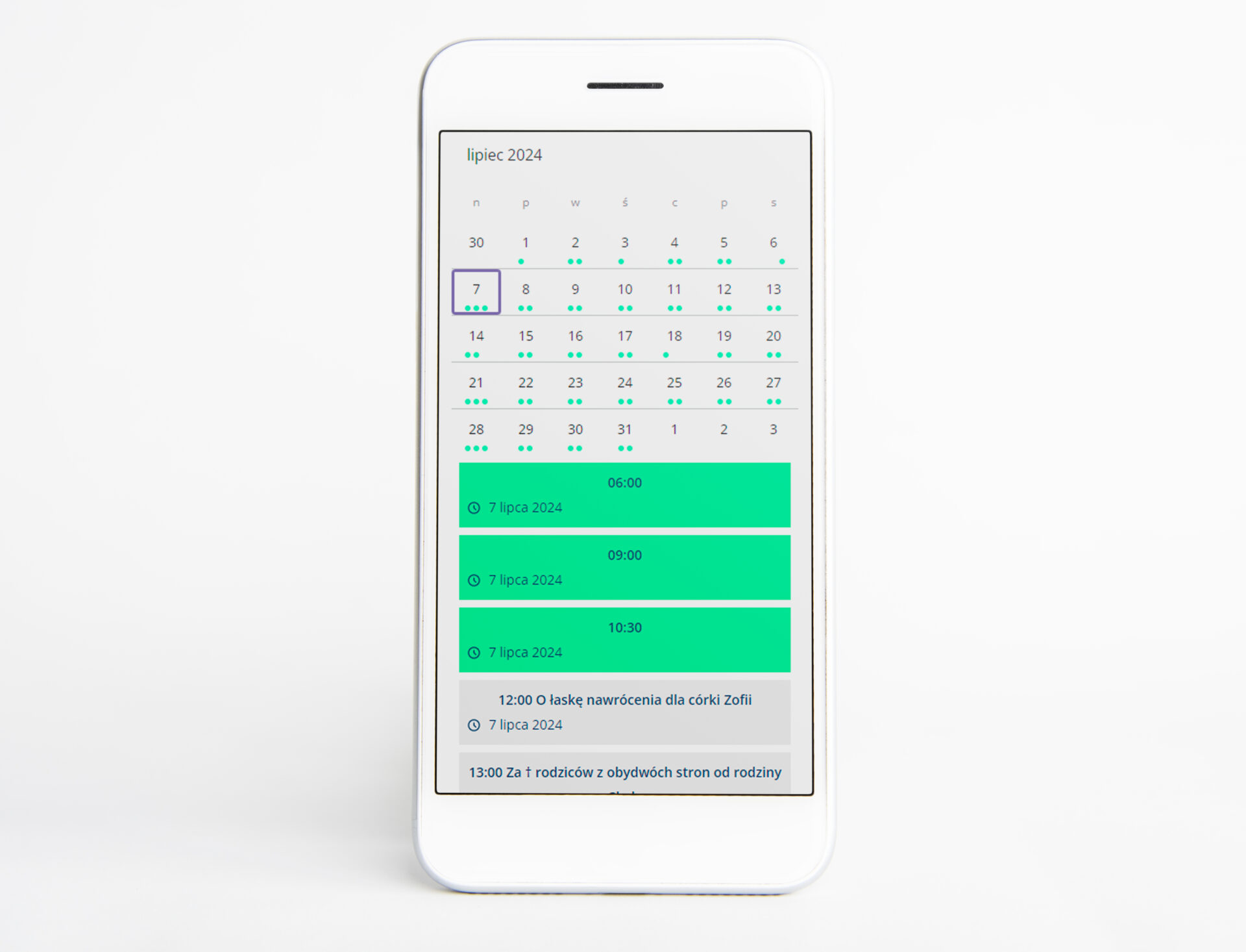 Intencjomat zawiera specjalny kalendarz wolnych intencji, w którym wierni mogą znaleźć i zarezerwować termin mszy świętej oraz złożyć dowolną ofiarę, bez wychodzenia z domu i wizyty w kancelarii parafialnej. – Intencjomat jest odpowiedzią na potrzebę wiernych, aby usprawnić proces zamawiania intencji mszalnych, do tej pory składanych wyłącznie osobiście w kancelarii – wyjaśnia Andrzej Mitek z zespołu IT Stacji7.