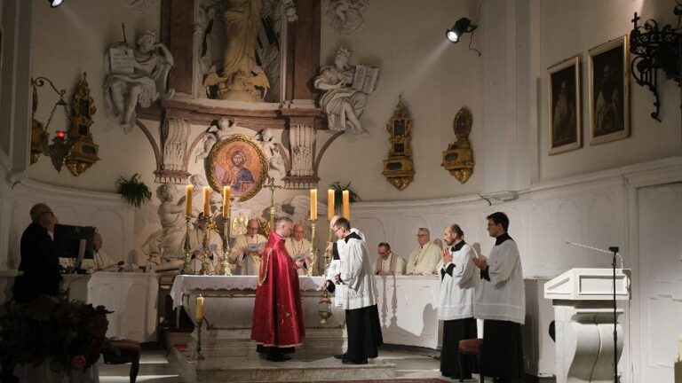 Śpiewy liturgiczne poprowadziła Schola Cantorum Beati Vladislai, pod kierunkiem Piotra Ulricha, która posługuje w duszpasterstwie Instytutu Dobrego Pasterza.