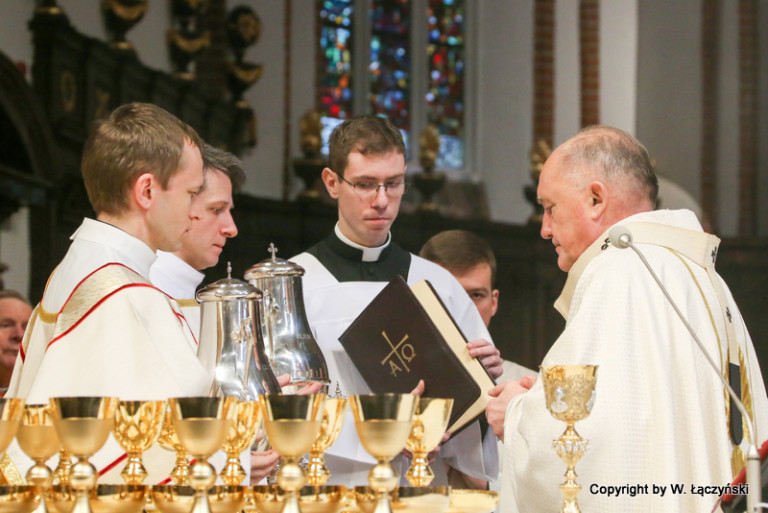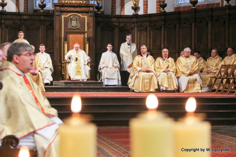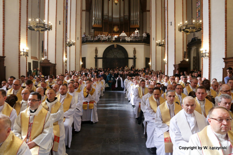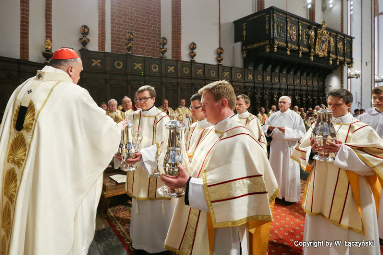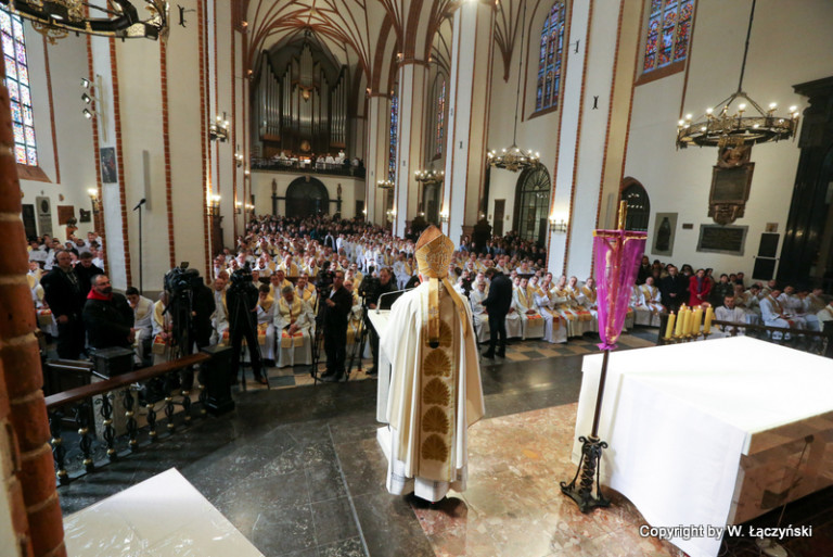 Podczas liturgii zostały poświęcone oleje święte i olej chorych, które przez cały rok będą służyć kapłanom do sprawowania sakramentów. Tego dnia kapłani odnawiają także przyrzeczenia złożone podczas święceń diakonatu, kapłańskich czy biskupich. „Czynimy to z wielkim przejęciem i wrażeniem, bo zdajemy sobie sprawę z tego, jak kruchymi narzędziami w rękach Pana Boga jesteśmy, a ta kruchość jest nam podpowiadana w sposób szczególny w Roku Miłosierdzia. Chcemy prosić miłosiernego Boga, by nam dodawał siły, byśmy potrafili udźwignąć to wezwanie i to powołanie, którym nas kapłanów obdarzył Chrystus” – mówił do kapłanów kard. Kazimierz Nycz.