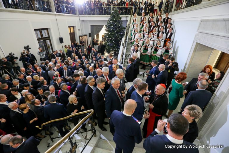 W tradycyjnym spotkaniu opłatkowym, odbywającym się w hallu głównym Sejmu, uczestniczyli Marszałkowie Sejmu i Senatu, a także przedstawiciele prezydium obu izb Parlamentu. Nie zabrakło posłów i senatorów ze wszystkich opcji politycznych. Nieobecny był jednak premier Mateusz Morawiecki, który przebywa na unijnym szczycie w Brukseli.