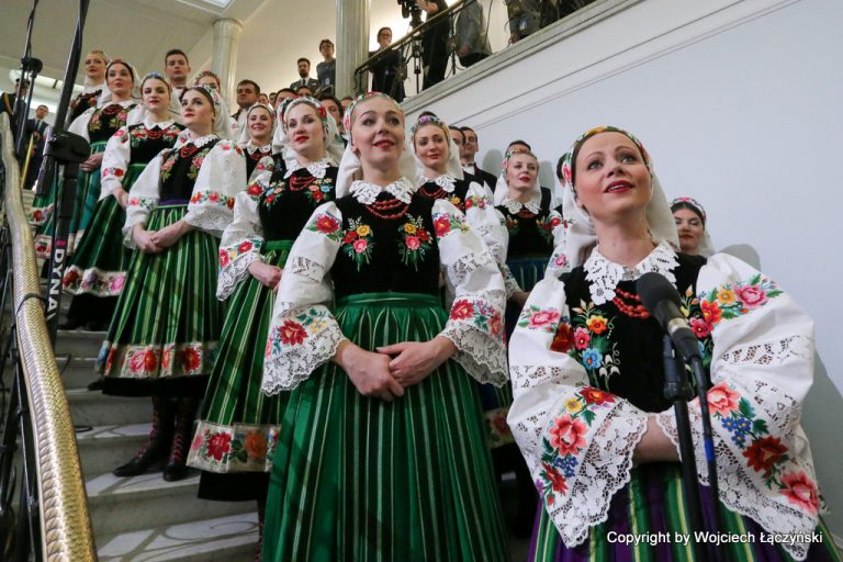 Spotkaniu towarzyszyły kolędy w wykonaniu chóru Państwowego Zespołu Ludowego Pieśni i Tańca „Mazowsze”.