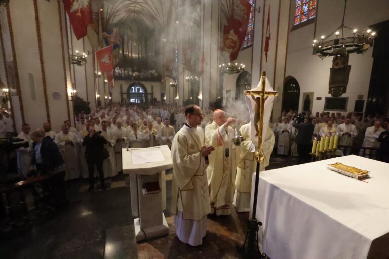 – Bardzo się cieszę z waszej obecności bo potrzebujemy takiej kapłańskiej wspólnoty przede wszystkim wokół ołtarza Eucharystii, wokół miejsca, w którym biskup włożył ręce na nasze głowy i wyświęcił nas na księży – mówił kard. Nycz.