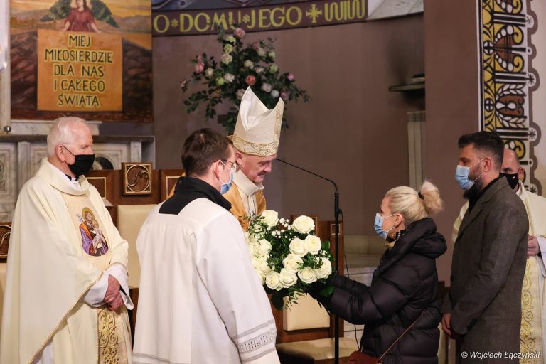 – Gromadzimy się w miejscu szeroko znanym poza granicami tej parafii z racji całodobowej wieczystej adoracji Najświętszego Sakramentu, która trwa tu nieprzerwanie od 35 lat. Co roku świętujemy ze swoim biskupem Warszawskie Łagiewniki, będące wykładnią szczególnej czci, którą tu na co dzień odbiera Boże Miłosierdzie. Jesteśmy w miejscu świętym, gdzie nagromadzona od lat modlitwa leczy ludzkie dusze i pozwala żyć w jedność z ludźmi i z Bogiem – powiedział proboszcz, witając licznie zgromadzonych w świątyni wiernych.