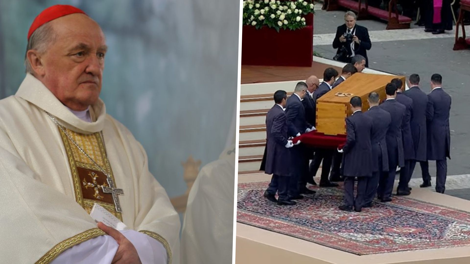 History is made. The coffin of Pope Benedict XVI is carried to St. Peter’s Square. Archbishop Georg Gänswein kisses the coffin in one of the most emotional moments of the funeral. The crowd started praying a Rosary.