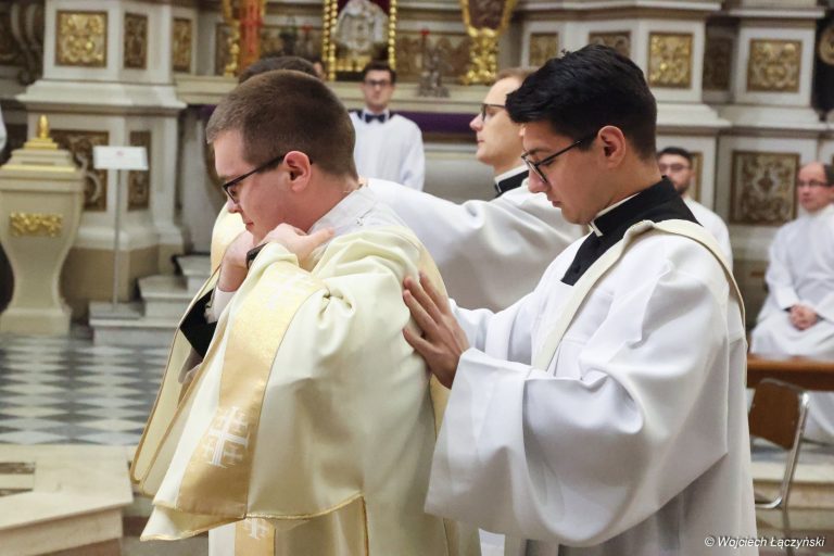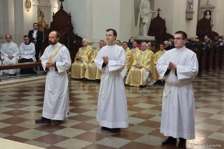 Święcenia diakonatu podczas Mszy św. w kościele seminaryjnym przyjęli alumni: Dominik Adam Kulczycki i Adam Rzeczkowski, a święcenia prezbiteratu diakon Damian Drozd.