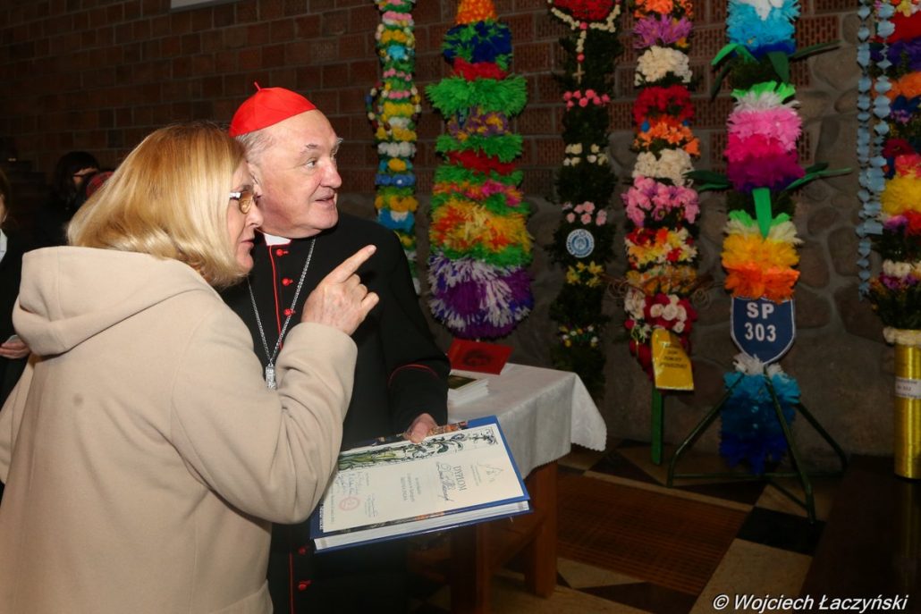 Kard. Kazimierz Nycz pogratulował także wszystkim uczestnikom i zwycięzcom Ursynowskiego Konkursu Palm. Odbywa się on w parafii pw. Wniebowstąpienia Pańskiego tradycyjnie w Niedzielę Palmową w czterech kategoriach: palma duża, średnia, mała i rodzinna.