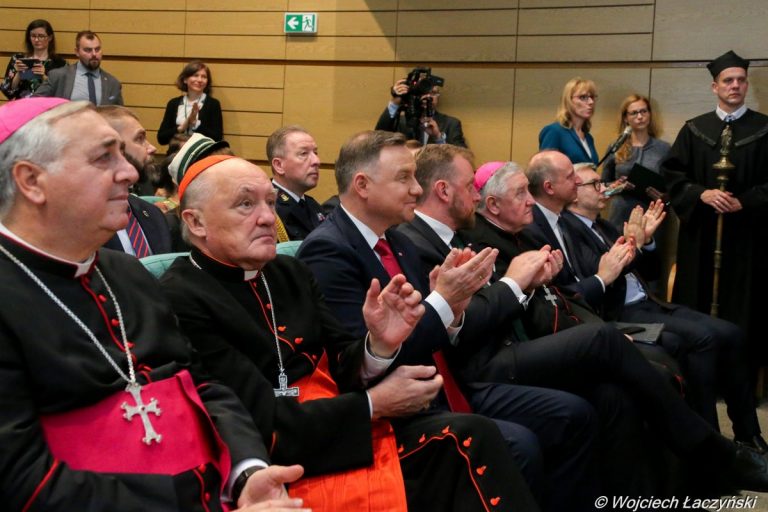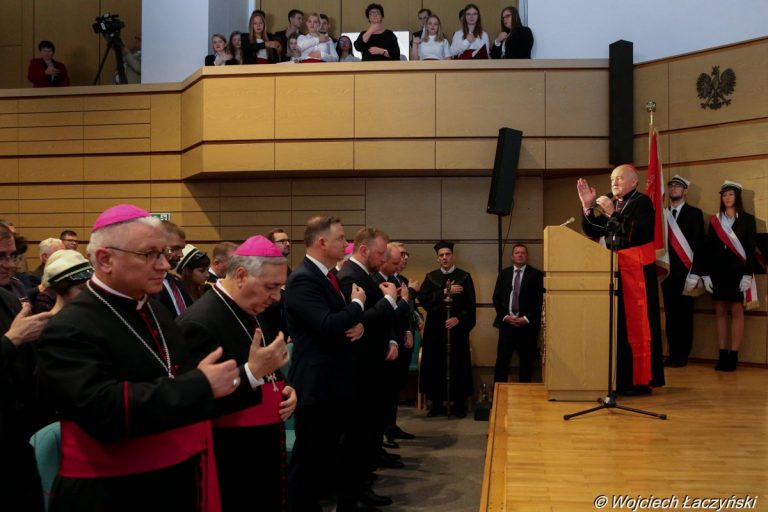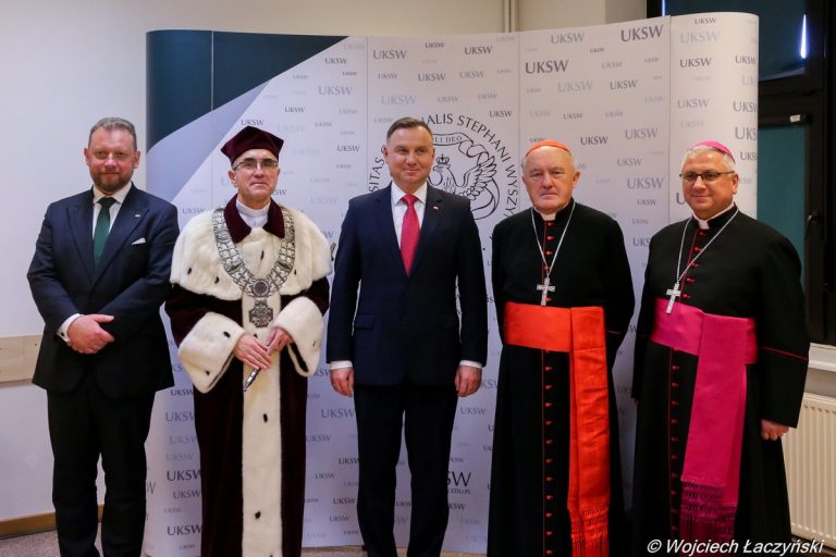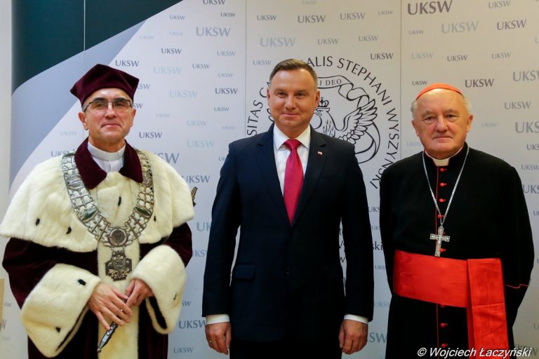 Miejscu UKSW na mapie nauki i edukacji w Polsce poświęcił swoje przemówienie prezydent Andrzej Duda. Ten uniwersytet, odkąd miałem przyjemność i zaszczyt na nim bywać zawsze działał tak, że odpowiadał całkowicie tym wartościom, do których zawsze czułem się przywiązany i w których zostałem wychowany. To na tym uniwersytecie zawsze z wielką życzliwością przyjmowany był prezydent Rzeczypospolitej Polskiej Lech Kaczyński, który był tu profesorem. Zawsze spotykał się tu z życzliwością, ze zrozumieniem, nawet w najtrudniejszych dla siebie czasach.