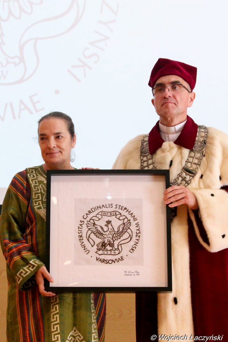 W nawiązaniu do zbliżającej się beatyfikacji patrona UKSW rektor podkreślił, że dla społeczności uniwersyteckiej, Stefan Wyszyński jest nie tylko wielkim człowiekiem Kościoła, mężem stanu i patronem, ale też ojcem, który swoim nauczaniem wyznacza uczelni kierunki rozwoju i wiernie się nią opiekuje. Jest orędownikiem działań, które podejmujemy. Kardynał Wyszyński stał się znakiem rozpoznawczym naszego uniwersytetu, dlatego też – mówił rektor – opracowując nowy System Identyfikacji Wizualnej UKSW, obok niezwykle ważnego i tradycyjnego godła, stworzyliśmy znak oparty na pierwszej literze nazwiska naszego Patrona. Nowy znak służący do komunikacji w świecie cyfrowym jest również nośnikiem cech charakteryzujących nasz uniwersytet: „W” jak wartości, „W” jak wiara, „W” jak wolność, „W” jak wspólnota, „W więcej niż wiedza”, „W” jak Wyszyński.