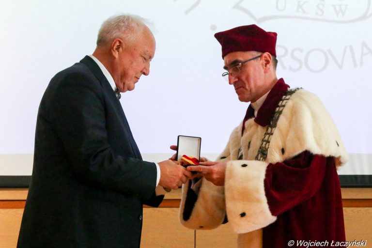 Drugie wyróżnienie wręczył profesor Jerzy Jurkiewicz, prezes Towarzystwa Warszawskiego Lekarskiego, które przyznało UKSW „Medal Ludziom i Ojczyźnie” jako wyraz najwyższego uznania i wdzięczności dla rozwoju nauki i kultury w oparciu o chrześcijańskie zasady i ideały.