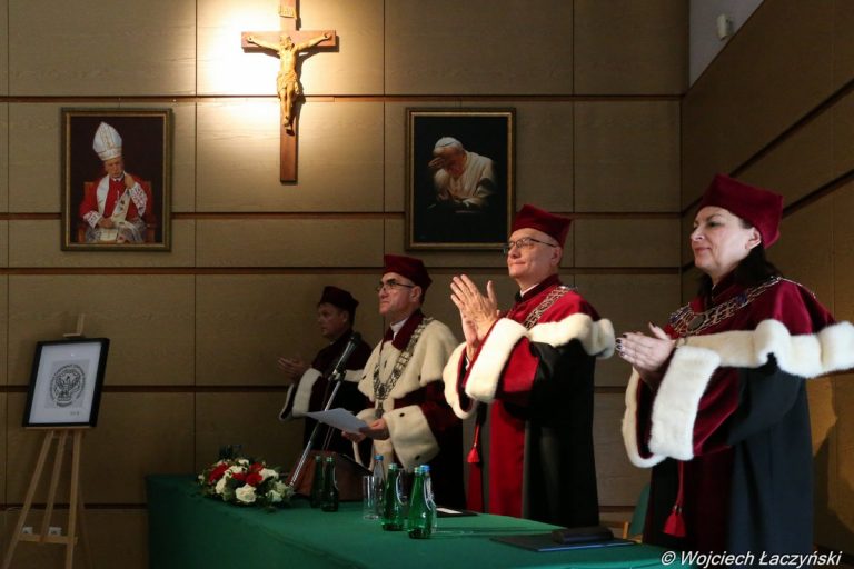Kard. Nycz wyraził życzenie, aby rok jubileuszowy był czasem nie tylko refleksji, ale równocześnie modlitwy przez wstawiennictwo wielkich świętych, którzy zajmowali się problematyką nauki i wiary; przez wstawiennictwo św. Jana Pawła II i jak Pan Bóg pozwoli – w drugiej części tego roku – niech to będzie to modlitwa przez wstawiennictwo błogosławionego patrona uczelni.