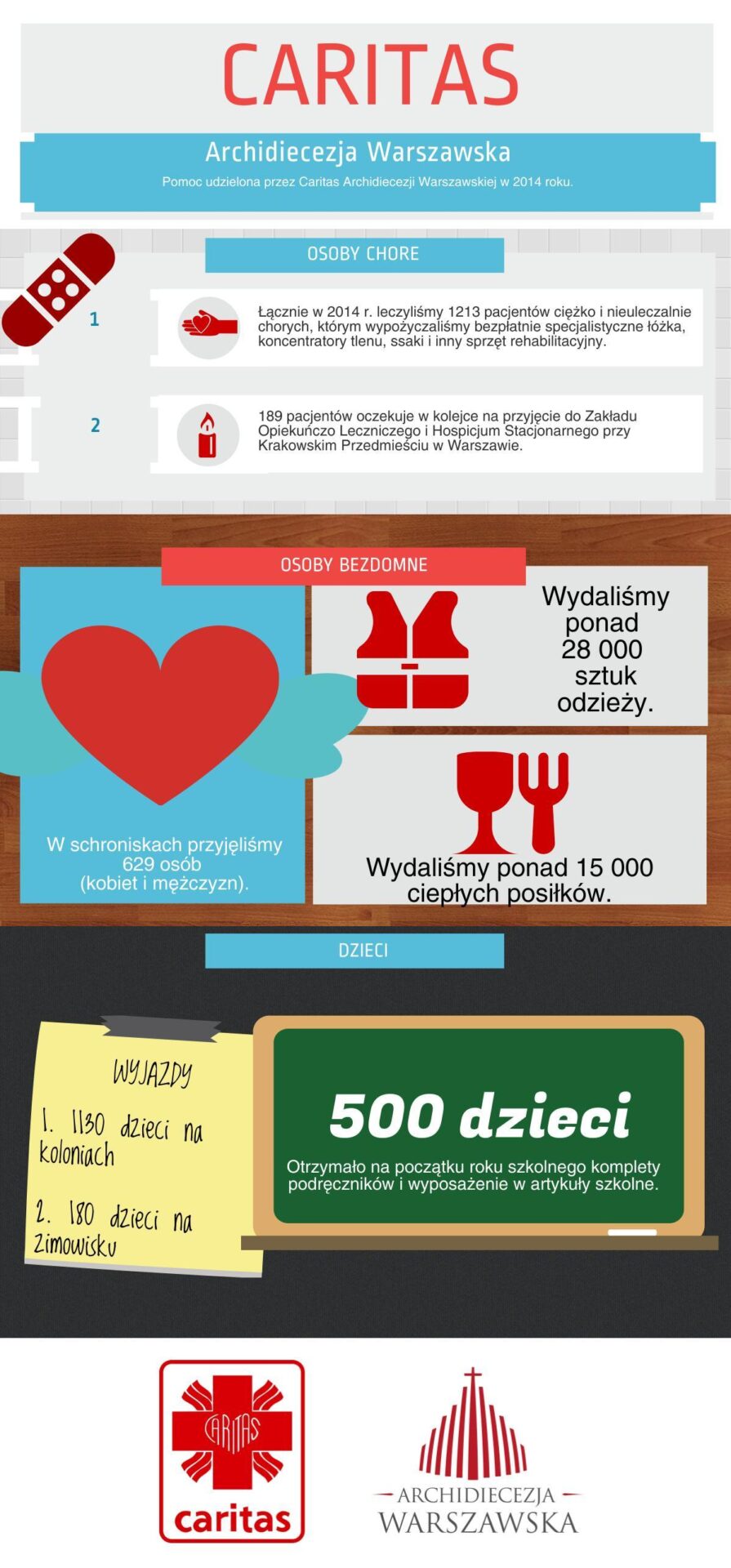 To nie jest jeszcze pełen bilans. Jak informuje ks. Zbigniew Zembrzuski, dyrektor warszawskiej Caritas, szczegółowe informacje dotyczące zakresu merytorycznego i finansowania naszych działań w 2014 roku zostaną opublikowane po przygotowaniu bilansu za miniony rok.