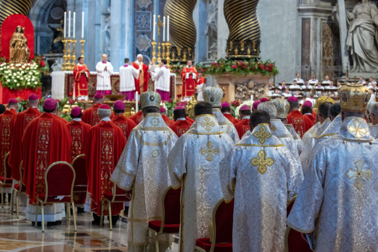 – Zbudowani świadectwem świętych Apostołów Piotra i Pawła, kroczmy razem w wierze i komunii, i przyzywajmy ich wstawiennictwa za nami wszystkimi, za Rzymem, za Kościołem i za całym światem – zachęcił papież na zakończenie swej homilii.