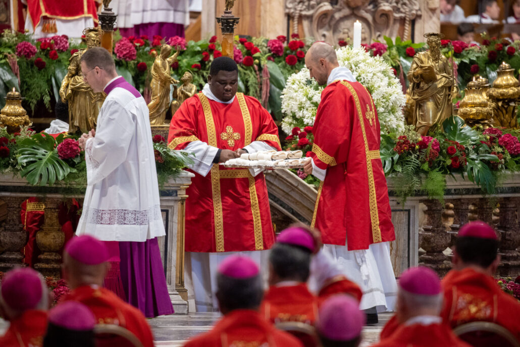 Po homilii Leon XIV pobłogosławił a następnie nałożył paliusze 54 metropolitom z całego świata. Wśród nich byli trzej metropolici z Polski: metropolita warszawski abp Adrian Galbas, metropolita szczecińsko-kamieński abp Wiesław Śmigiel i metropolita poznański abp Zbigniew Zieliński.