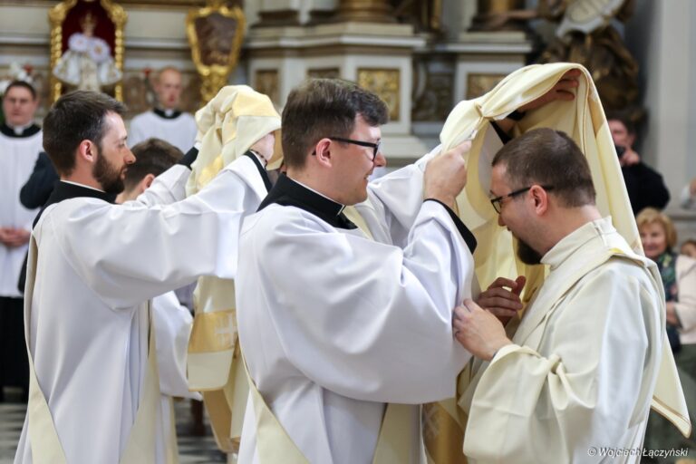 – Musicie być jako diakoni i w przyszłości jako kapłani bardzo gorliwi, by za 5, 10 czy 20 lat wziąć na ramiona Kościół warszawski i zastąpić tych 30, którzy jeszcze niedawno byli święceni. Jak bardzo musicie być mocni, by służyć Chrystusowi, jak bardzo się starać, by ich zastąpić! – mówił metropolita warszawski, prosząc, by przyjmujący święcenia diakonatu weszli na drogę synodalności i powierzali odpowiedzialność i zadania, których nie muszą wykonywać, świeckim.