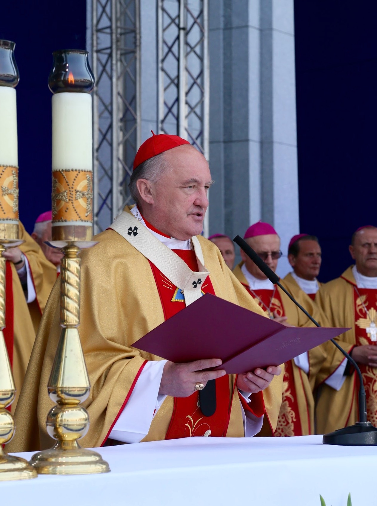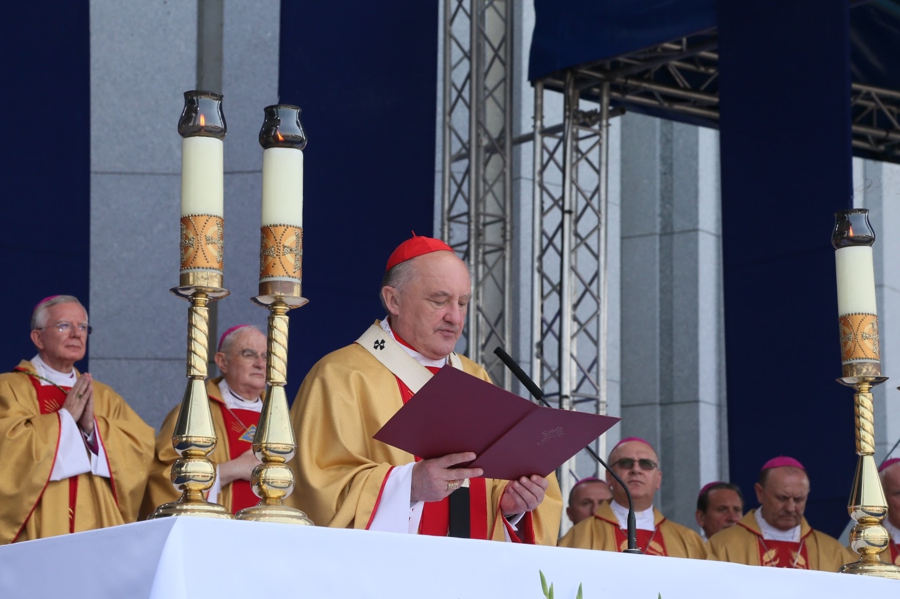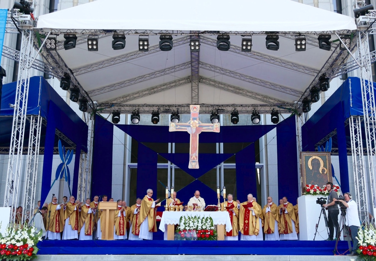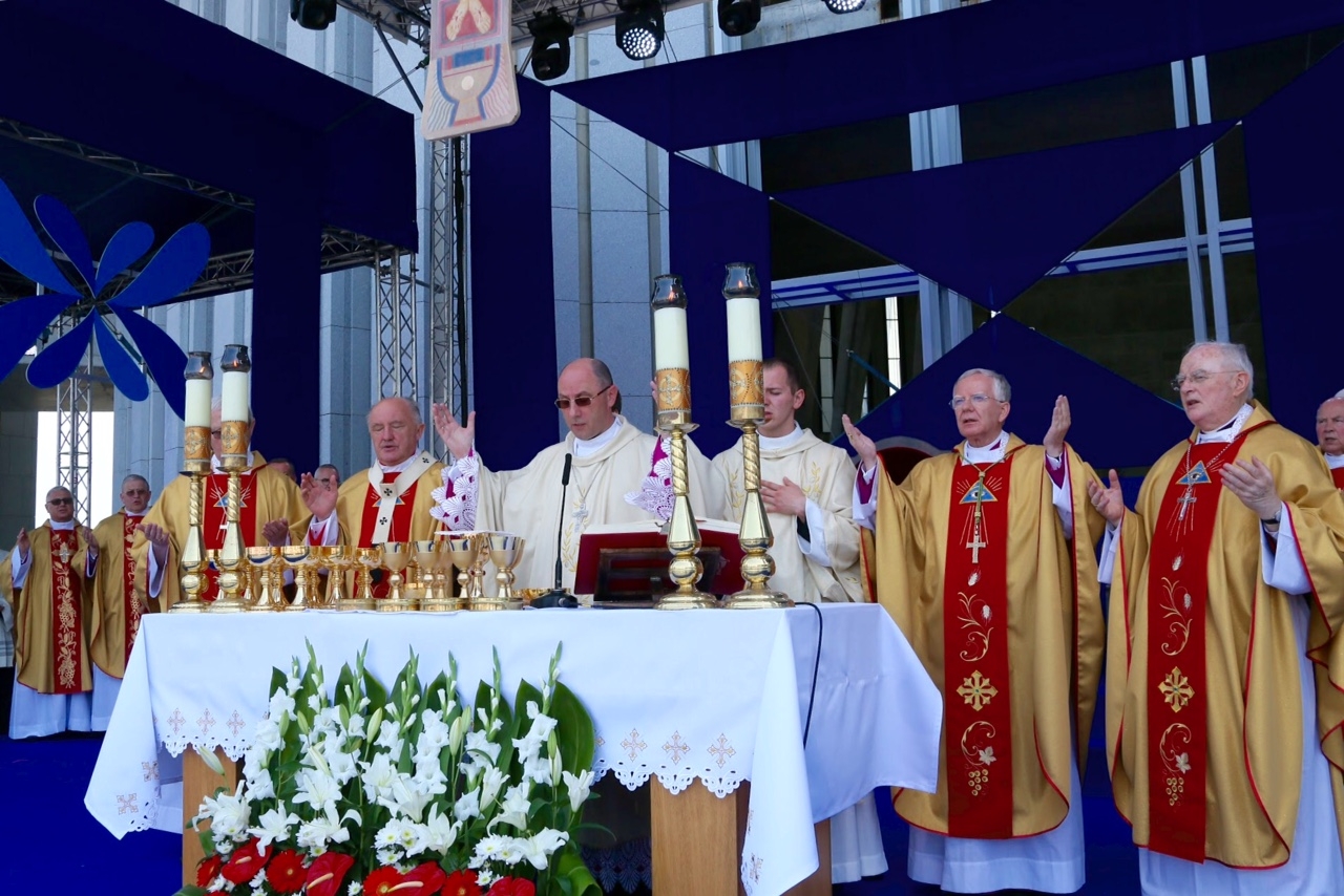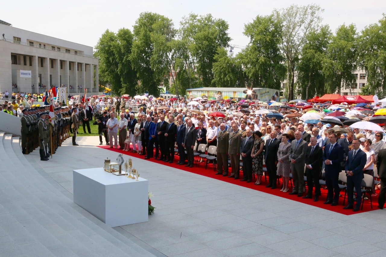 Przy ołtarzu usytuowanym przed świątynią Opatrzności Bożej zgromadził się cały Episkopat z wiceprzewodniczącym abp. Markiem Jędraszewskim z Łodzi oraz metropolitą warszawskim kard. Kazimierzem Nyczem, który witał i dziękował uczestnikom uroczystości. Obecni byli liczni duchowni, osoby konsekrowane, przedstawiciele władz z prezydentem elektem Andrzejem Dudą, członkowie ruchów i organizacji kościelnych, poczty sztandarowe, przedstawiciele miast papieskich i różnych regionów Polski w strojach ludowych, a także żołnierze, harcerze, młodzież i dzieci.