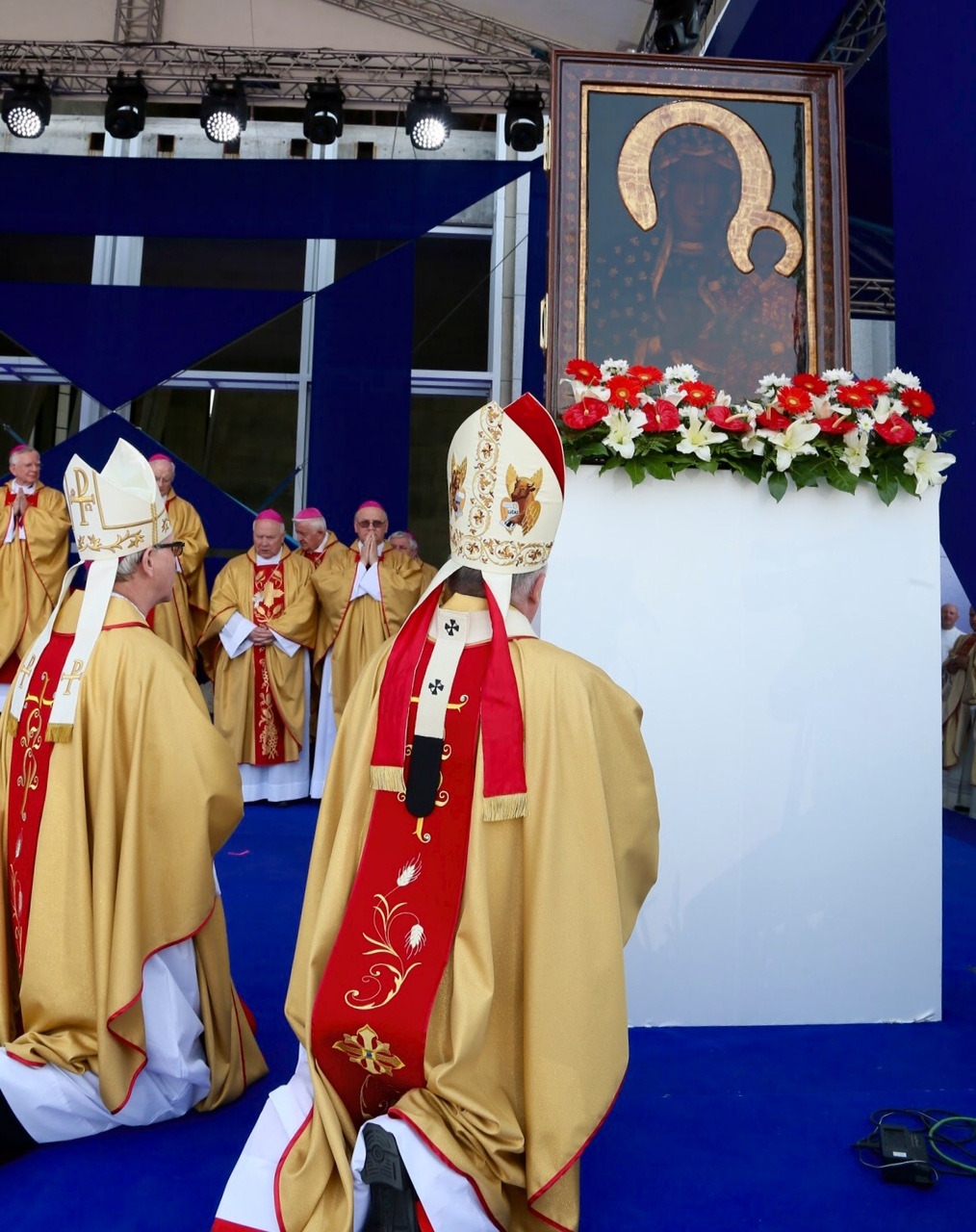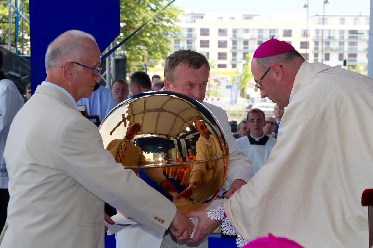 W darach ołtarza niesiono m.in. miedzianą pozłacaną kulę, pozłacany znak Akcji Katolickiej oraz kilka tysięcy intencji. Na koniec kard. Nycz zawierzył archidiecezję warszawską Matce Bożej.