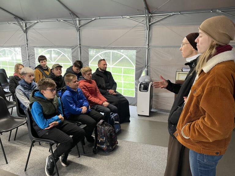 Pielgrzymkę młodzi rozpoczęli od Mszy Świętej w kaplicy Matki Bożej Anielskiej, a później odwiedzili miejsce, w którym znajduje się sarkofag bł. Elżbiety Róży Czackiej. Uczestnicy mieli także okazję spotkać się i porozmawiać z osobą niewidomą oraz zwiedzić muzeum poświęcone bł. Elżbiecie Róży Czackiej i całemu dziełu Lasek.