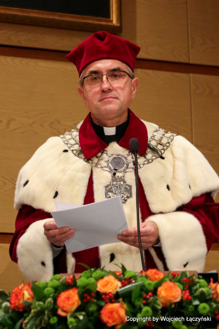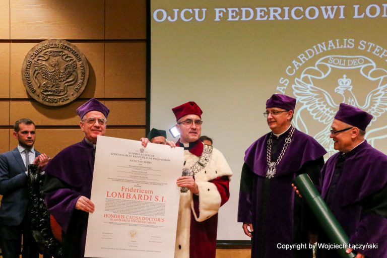 – Nadając tytuł honoris causa o. Fryderykowi Lombardiemu senat UKSW włącza go do swojej społeczności akademickiej, a zarazem pragnie uhonorować postawę i zasługi wybitnego dziennikarza jezuity, współpracownika trzech papieży – powiedział rektor UKSW. Jednocześnie podziękował za przyjęcie wyróżnienia. – Jest to nie tylko uhonorowanie pracy w mediach i z mediami, zasług na rzecz Kościoła, życzliwości polskiemu papieżowi św. Janowi Pawłowi II, ale także nobilitacja dla naszego uniwersytetu – dodał.