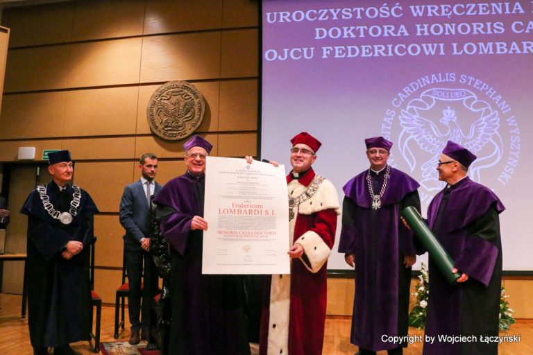 – Tytułem doktora honoris causa uczenie honorują osobistości wybitne, szczególnie zasłużone dla nauki, kultury i społeczeństwa. Wybór kandydata podkreśla najważniejsze wartości, które uczelnia ceni i wskazuje postawy, które pragnie kształtować – mówił dziś ks. prof. Stanisław Dziekoński, rektor Uniwersytetu Kardynała Stefana Wyszyńskiego podczas uroczystości wręczenia tytułu honoris causa o. Friderico Lombardiemu, która odbyła się dziś w Warszawie.