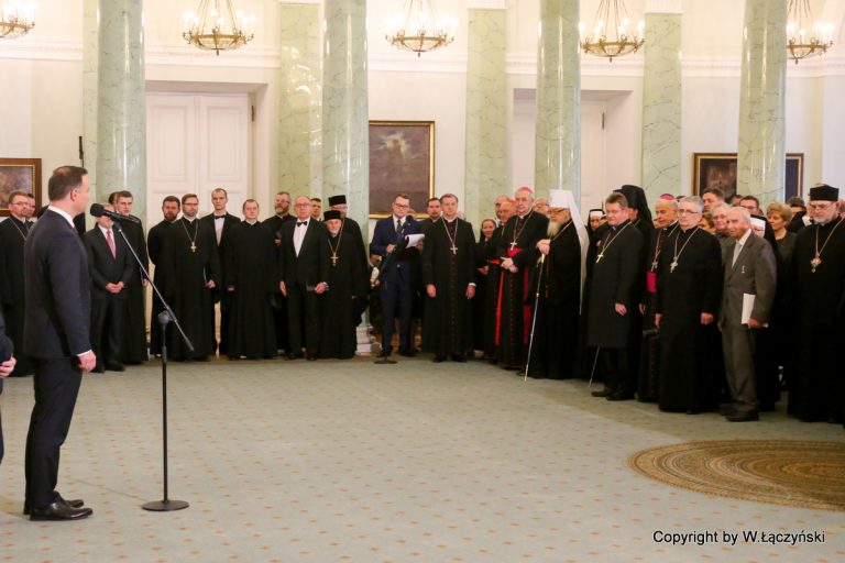W Pałacu Prezydenckim w Warszawie odbyło się spotkanie przedstawicieli wspólnot religijnych obecnych w Polsce z Andrzejem Dudą i jego małżonką Agatą. Tradycyjnie na początku roku Para Prezydencka zaprasza duchownych różnych wyznań, by wzajemnie złożyć sobie życzenia. W wygłaszanych przy tej okazji przemówieniach wiele miejsca poświęcono potrzebie obniżenia temperatury sporu politycznego, który nie pozostaje bez wpływu na społeczeństwo.