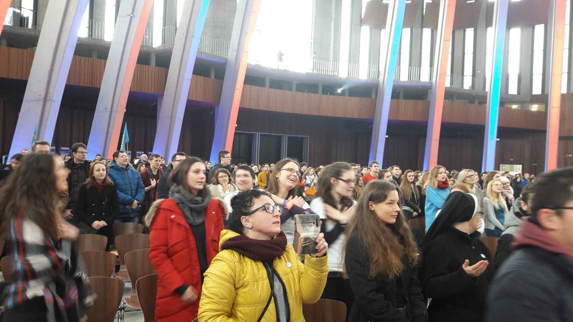 W dolnym kościele Świątyni Opatrzności Bożej trwa już adoracja Najwiętszego Sakramentu, chętni mogą się wyspowiadać, albo poprosić o modlitwę wstawienniczą. Uczestnikom pomagają wolontariusze w pomarańczowych t-shirtach.