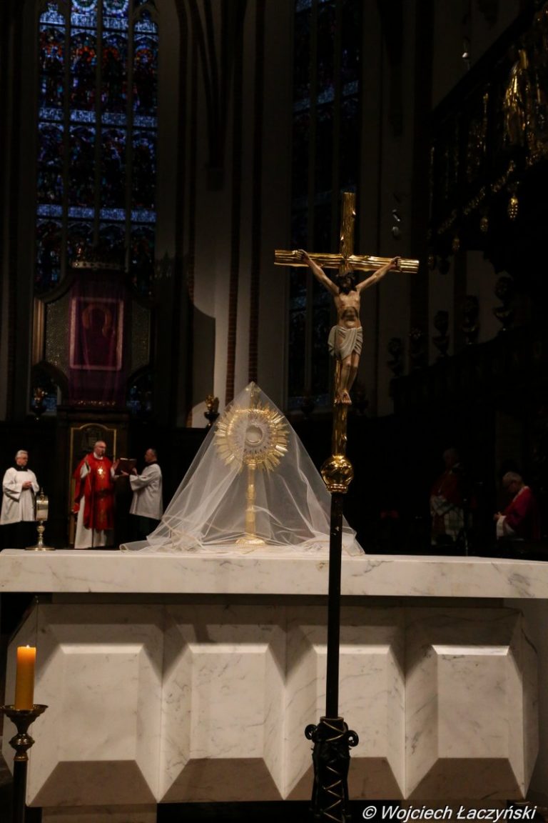 Na zakończenie Najświętszy Sakrament w monstracji zasłoniętej tiulowym welonem został przeniesiony do tradycyjnego grobu Pańskiego przygotowanego w Archikatedrze Warszawskiej.