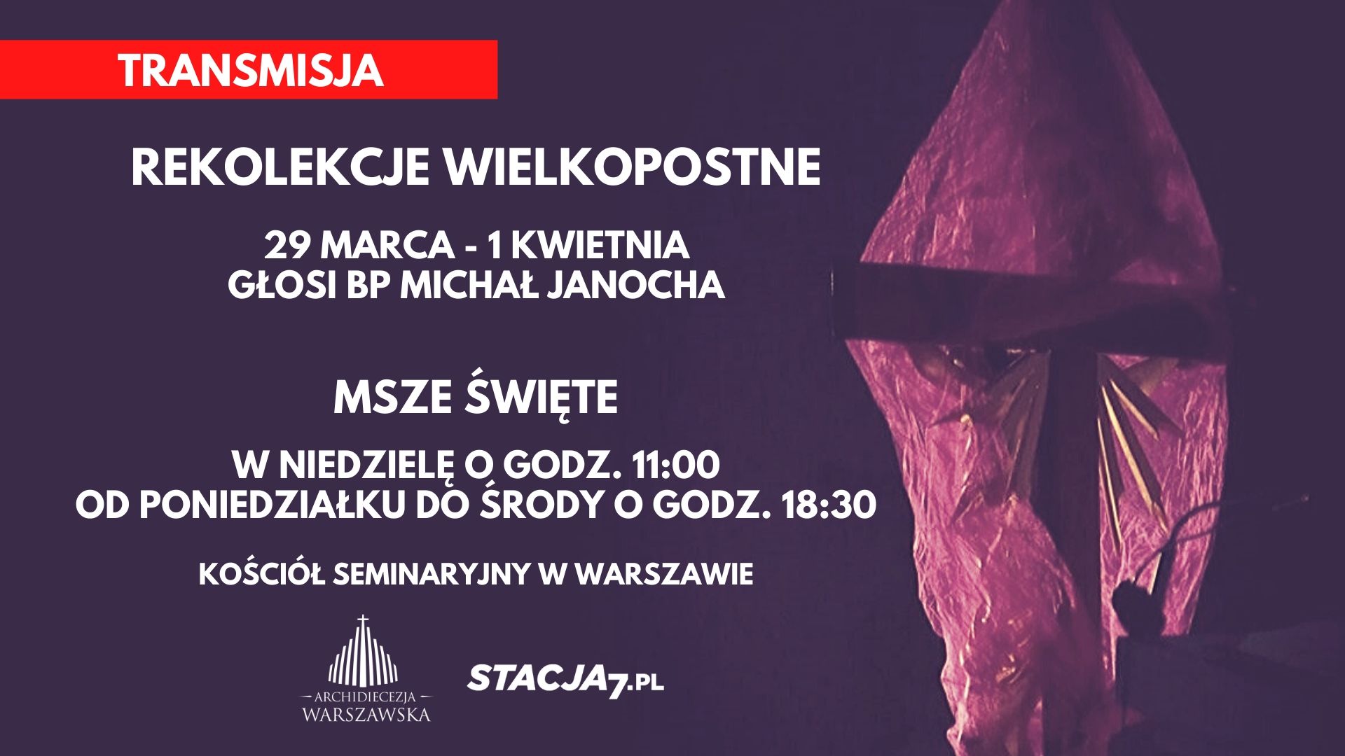 Biskup pomocniczy Archidiecezji Warszawskiej wygłosi rekolekcje wielkopostne: w niedzielę 28 marca w kościele seminaryjnym podczas Mszy św. o godz. 11.00. Nastepnie, od poniedziałku 30 marca do 1 kwietnia o godz. 18.30 w kościele seminaryjnym.