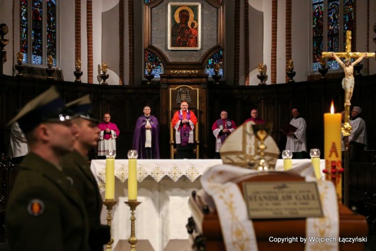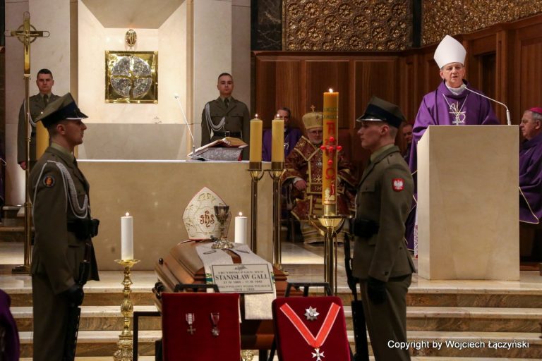 – Przeniesienie jego doczesnych szczątków do krypty w katedrze polowej i drugi pogrzeb stają się okazją, aby jeszcze raz przeczytać księgę życia tego niezwykłego człowieka i wybitnego pasterza, odkryć jego dokonania, zdumieć się i zachwycić pełną oddania i poświęcenia służbą – mówił w homilii bp Guzdek. Zaznaczył, że wielu bohaterów w historii naszego kraju miało dwa pogrzeby: pierwszy skromny, często w ukryciu lub z dala od ojczyzny oraz drugi, gdy „wydobywane wówczas z ziemi doczesne szczątki, jak drogocenny diament przenoszono do narodowego panteonu, do miejsca uznanego za godne spoczynku świętego lub narodowego bohatera”. Podobnie stało się z abp. S. Gallem, który przez 75 lat spoczywał na Powązkach „szerzej nieznany a nawet nieco zapomniany”.