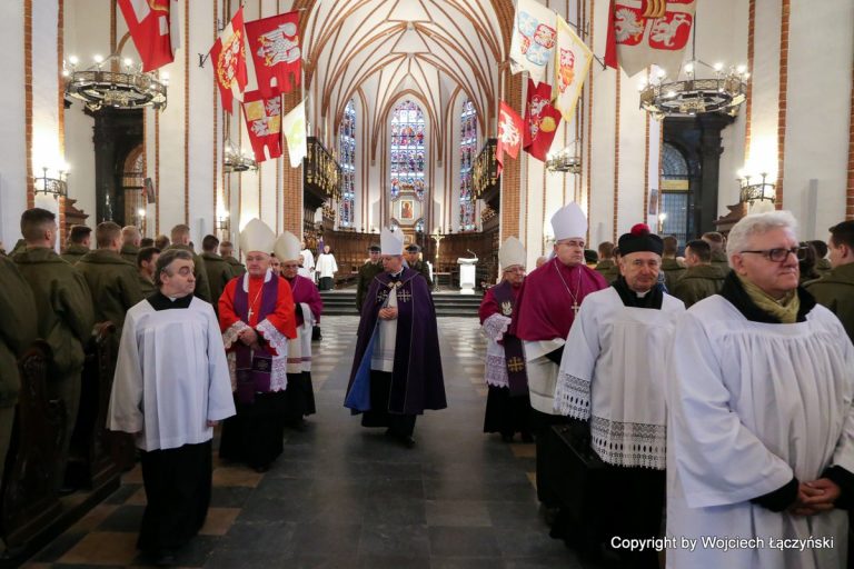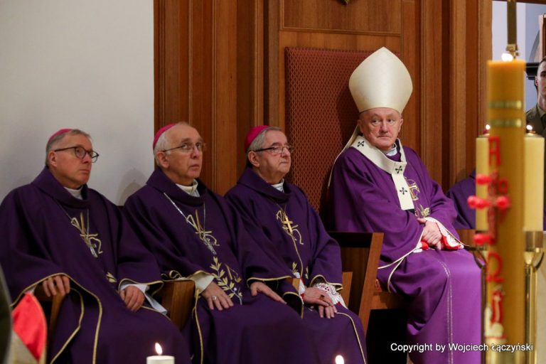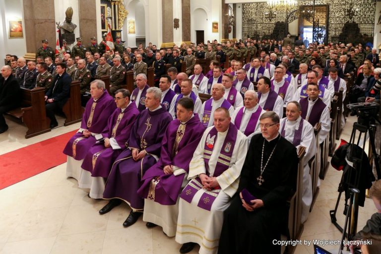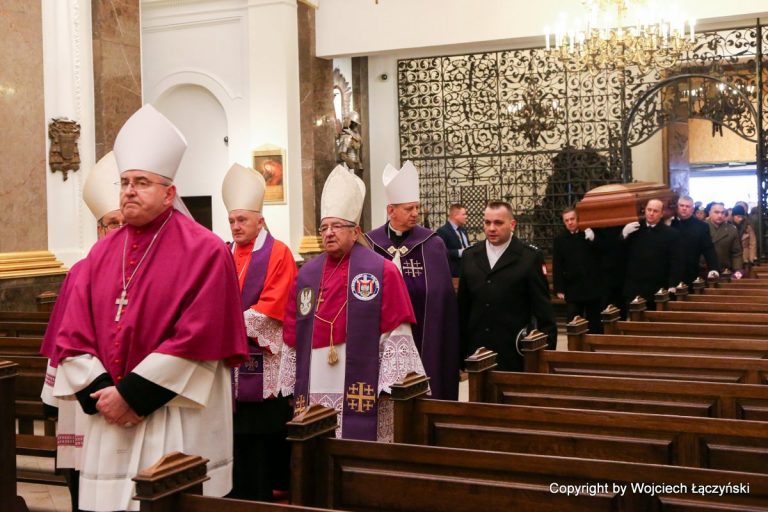 Mszy św. koncelebrowanej przez kilkunastu biskupów, przewodniczył kard. Kazimierz Nycz. W Eucharystii wzięło też udział kilkudziesięciu duchownych związanych z duszpasterstwem wojskowym oraz żołnierze. Przybyli też na nią przedstawiciele władz państwowych, na czele z prezydentem Andrzejem Dudą oraz członkowie Kościołów prawosławnego i ewangelicko-augsburskiego, a także rodzina zmarłego biskupa.