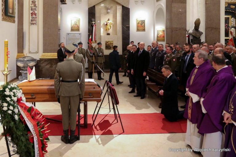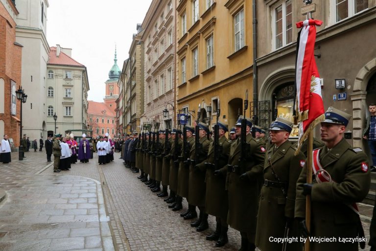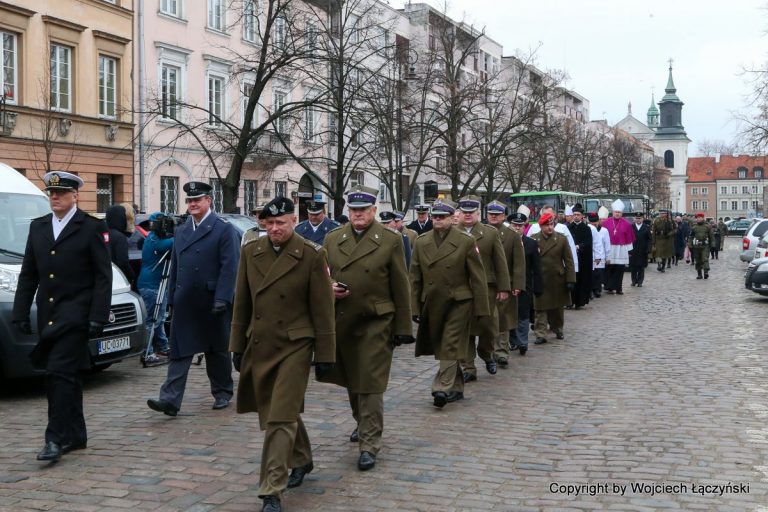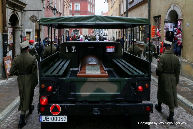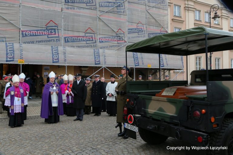 Po krótkim nabożeństwie żałobnym, któremu przewodniczył kard. Kazimierz Nycz, trumnę złożono na wojskowej lawecie i w asyście duchownych, orkiestry wojskowej oraz wiernych, przewieziono do katedry przy ul. Długiej. Przed katedrą poświęcił ją biskup polowy Józef Guzdek.
