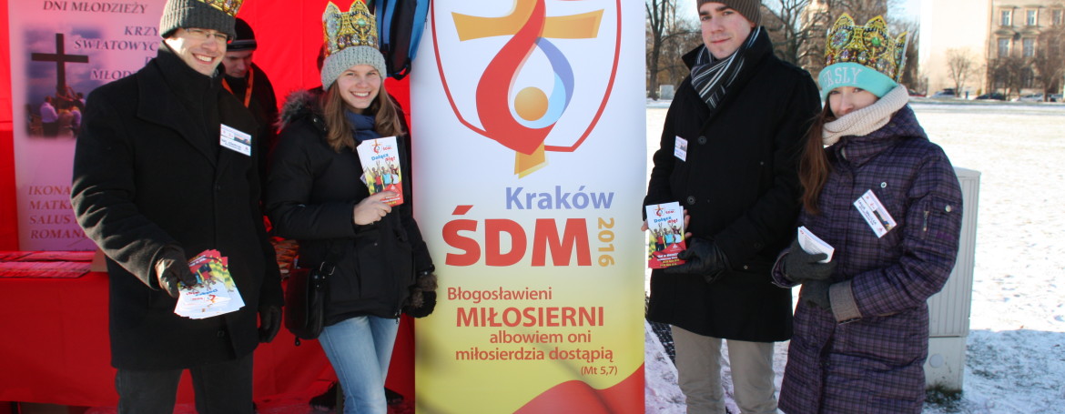 Wolontariusze z Archidiecezji Warszawskiej uroczystość Objawienia Pańskiego spędzili w centrum miasta. Niska temperatura i śnieg nie przeszkodziły nam w promowaniu idei Światowych Dni Młodzieży.Słońce było po naszej stronie i przyświecało nam przez cały czas a mieszkańcy ochoczo rozmawiali o chęci przyjęcia pielgrzymów do swoich domów. W pewnym momencie prawie wszyscy uczestnicy obchodów znajdujący się na placu Piłsudskiego mieli już ŚDM-owe foldery w ręku:)) Dziękujemy wszystkim osobom które włączyły się w pomoc! A wszystkim innym którzy chcieli by w przyszłości pomóc w podobnych akcjach, zapraszamy do wysłania zgłoszenia poprzez stronę.