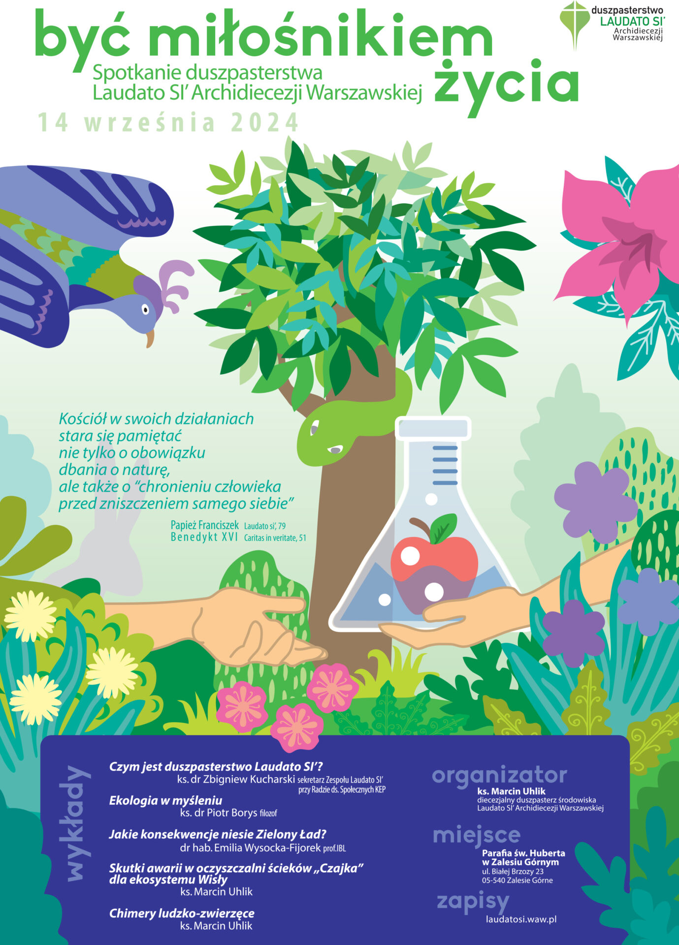 Jako diecezjalny duszpasterz środowiska Laudato Si’ serdecznie zapraszam przedstawicieli parafii, zgromadzeń życia konsekrowanego, ruchów i katechetów Archidiecezji Warszawskiej do uczestnictwa w spotkaniu duszpasterstwa Laudato Si’ pt. Być miłośnikiem życia.
