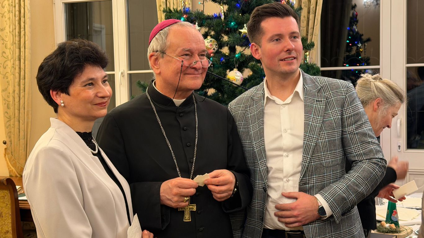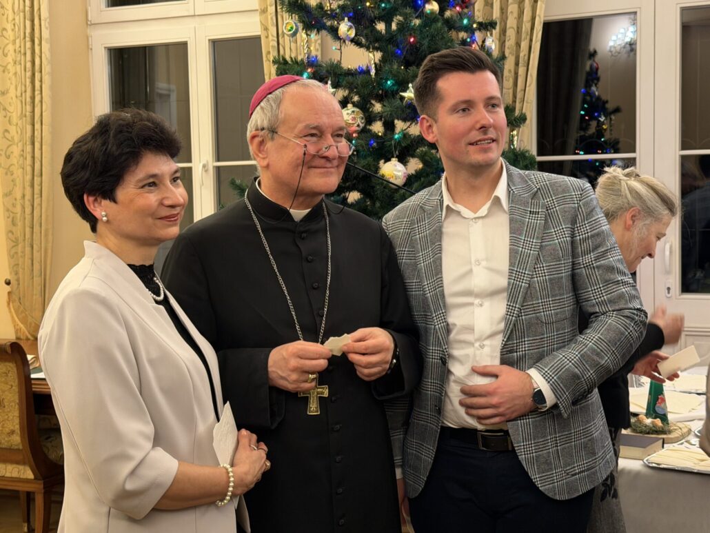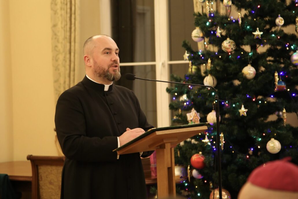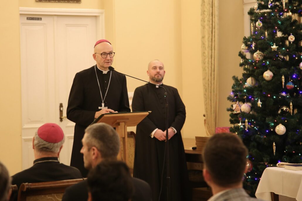 Życzenia dyrektorom i nauczycielom złożył bp Michał Janocha, biskup pomocniczy Archidiecezji Warszawskiej. Nawiązując do kolęd wykonanych podczas spotkania, zwrócił uwagę na radość i entuzjazm wypływające z tajemnicy Bożego Narodzenia. Podkreślił, że choć realia narodzin Chrystusa były ubogie i niepozorne, to właśnie z nich zrodziła się prawdziwa radość.