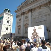 Z archikatedry na pl. Piłsudskiego przeszła procesja eucharystyczna poprowadzona przez kard. Kazimierza Nycza ♦ Licznie wzięli w niej udział mieszkańcy stolicy ♦ „Procesja eucharystyczna do Pana, jest także procesją ku sobie nawzajem. – Aby w niej uczestniczyć szczerze, trzeba pokonywać uprzedzenia i zawsze iść za Nim i z Nim” – mówił kard. Nycz w kazaniu
