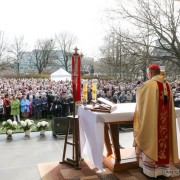 Tłumy mieszkańców stolicy przybyły w Niedzielę Bożego Miłosierdzia na warszawskie Moczydło, by pod figurą Pana Jezusa uczestniczyć w Mszy św. pod przewodnictwem kard. Kazimierza Nycza.