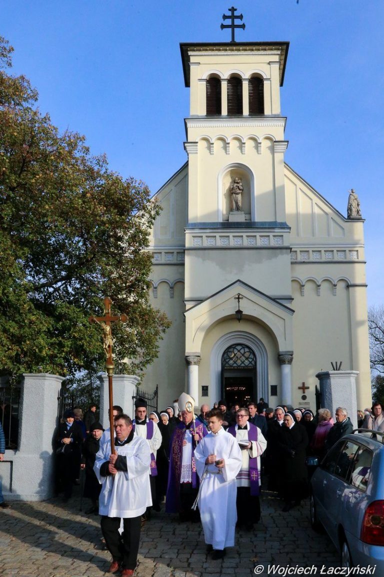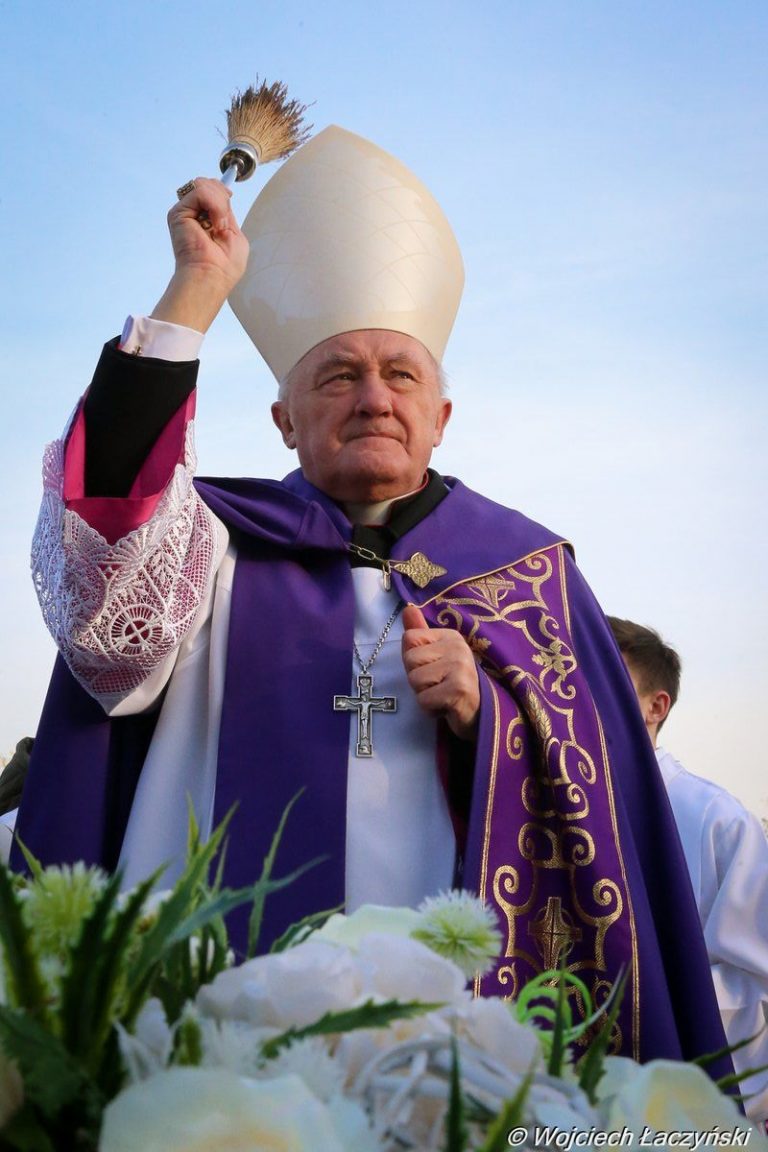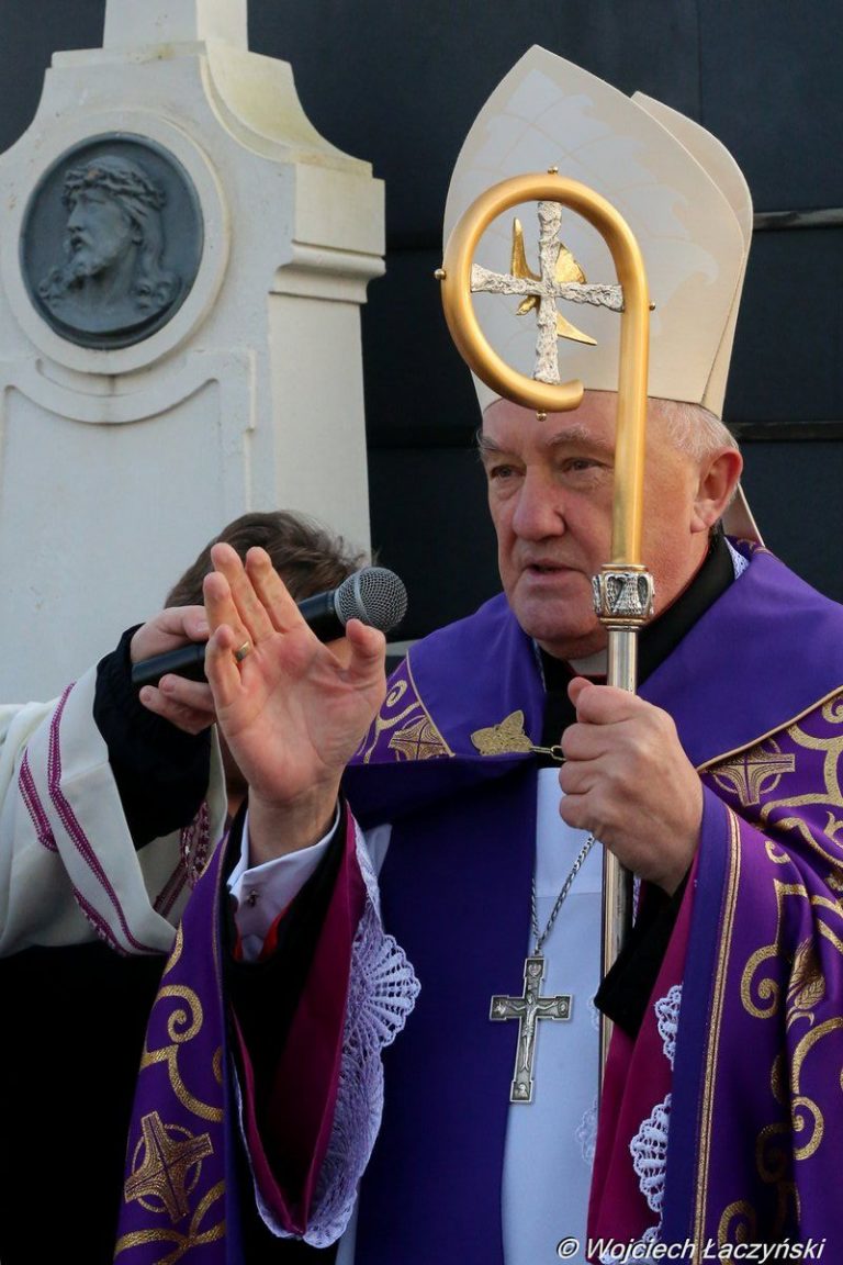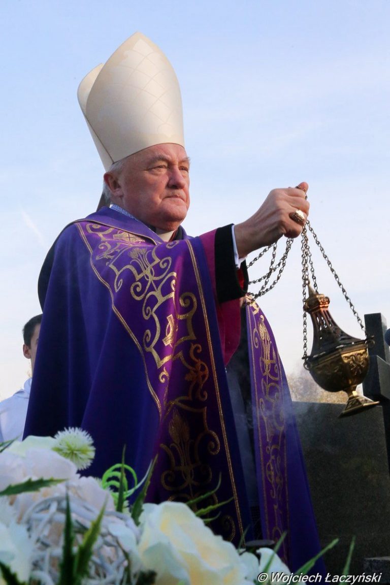 Po Mszy św. metropolita warszawki poprowadził procesję na tzw. starym cmentarzu przy kościele.