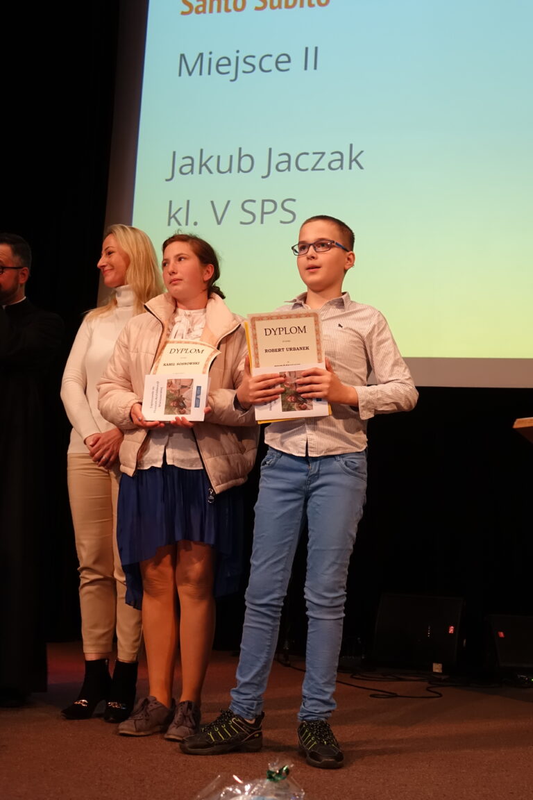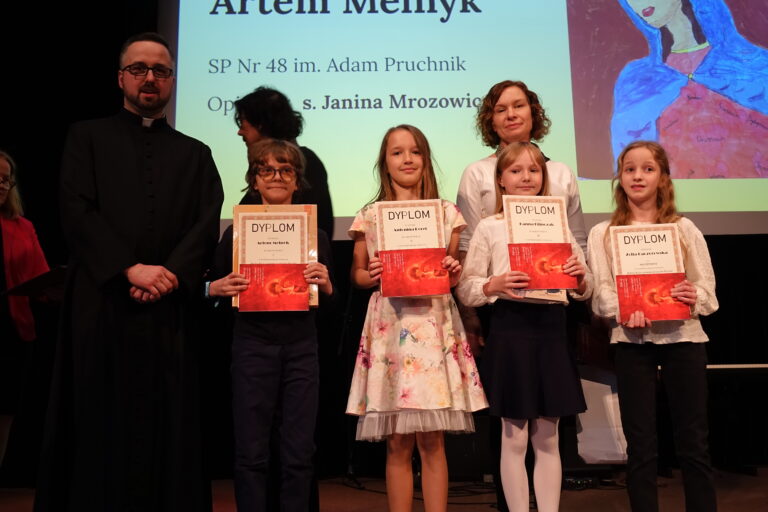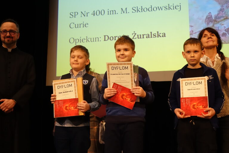 Ks. Łukasz Przybylski, dyrektor wydziału duszpasterstwa dzieci i młodzieży, podziękował wszystkim obecnym i zaangażowanym rodzicom uczniów oraz zaprosił do udziału w przyszłorocznych konkursach.