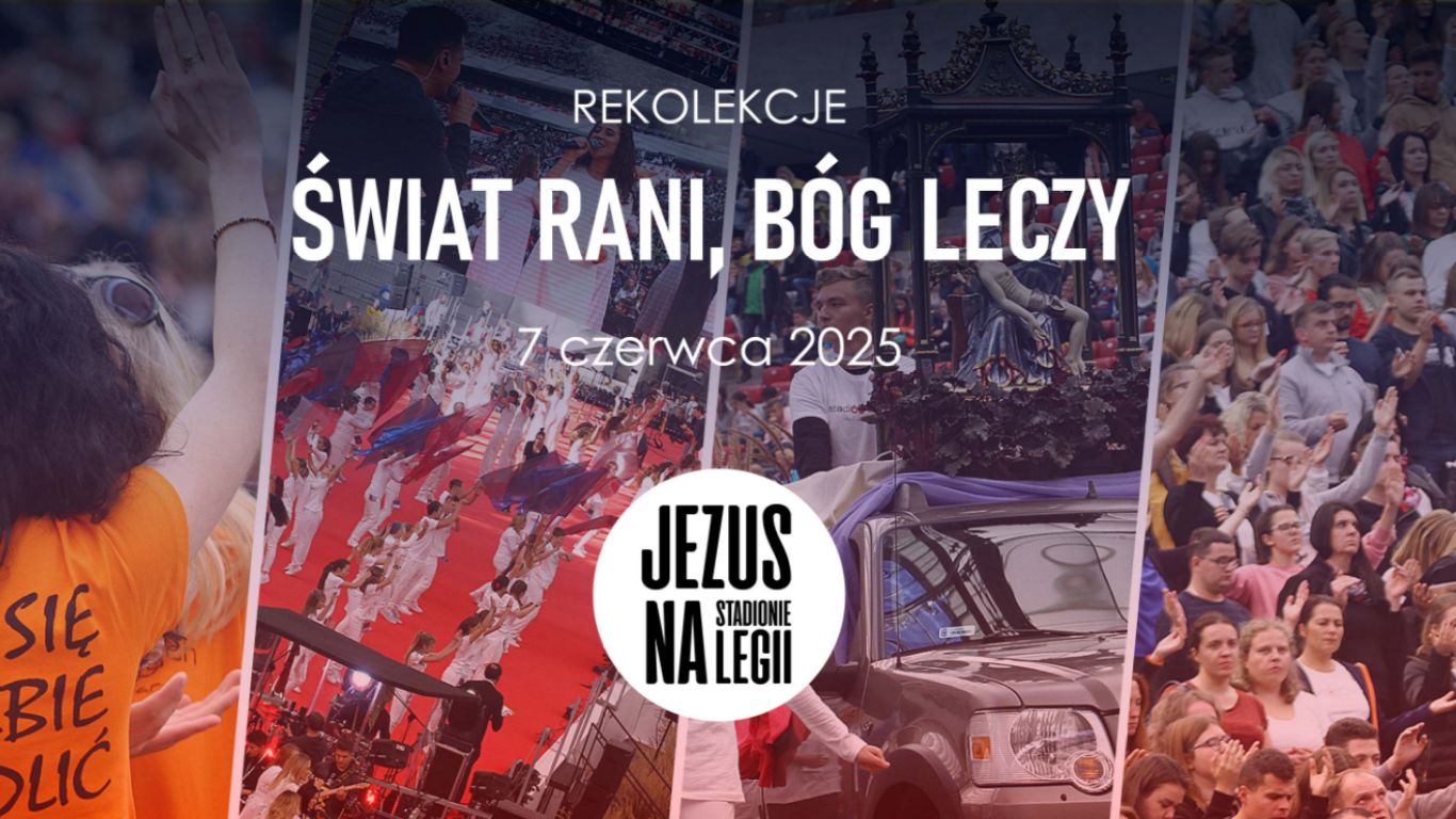 „Jezus na Stadionie Legii” to ośmiogodzinne spotkanie rekolekcyjne, które odbędzie się w sobotę, 7 czerwca 2025 roku, na Stadionie Legii w Warszawie pod hasłem „Świat rani, Bóg leczy”. „Zaproszony jest każdy, kto chce przez udział w spotkaniu oddać chwałę Panu Bogu” – podkreślają organizatorzy z Fundacji SMS Z NIEBA, którzy spodziewają się na stadionie 30 tys. osób.
